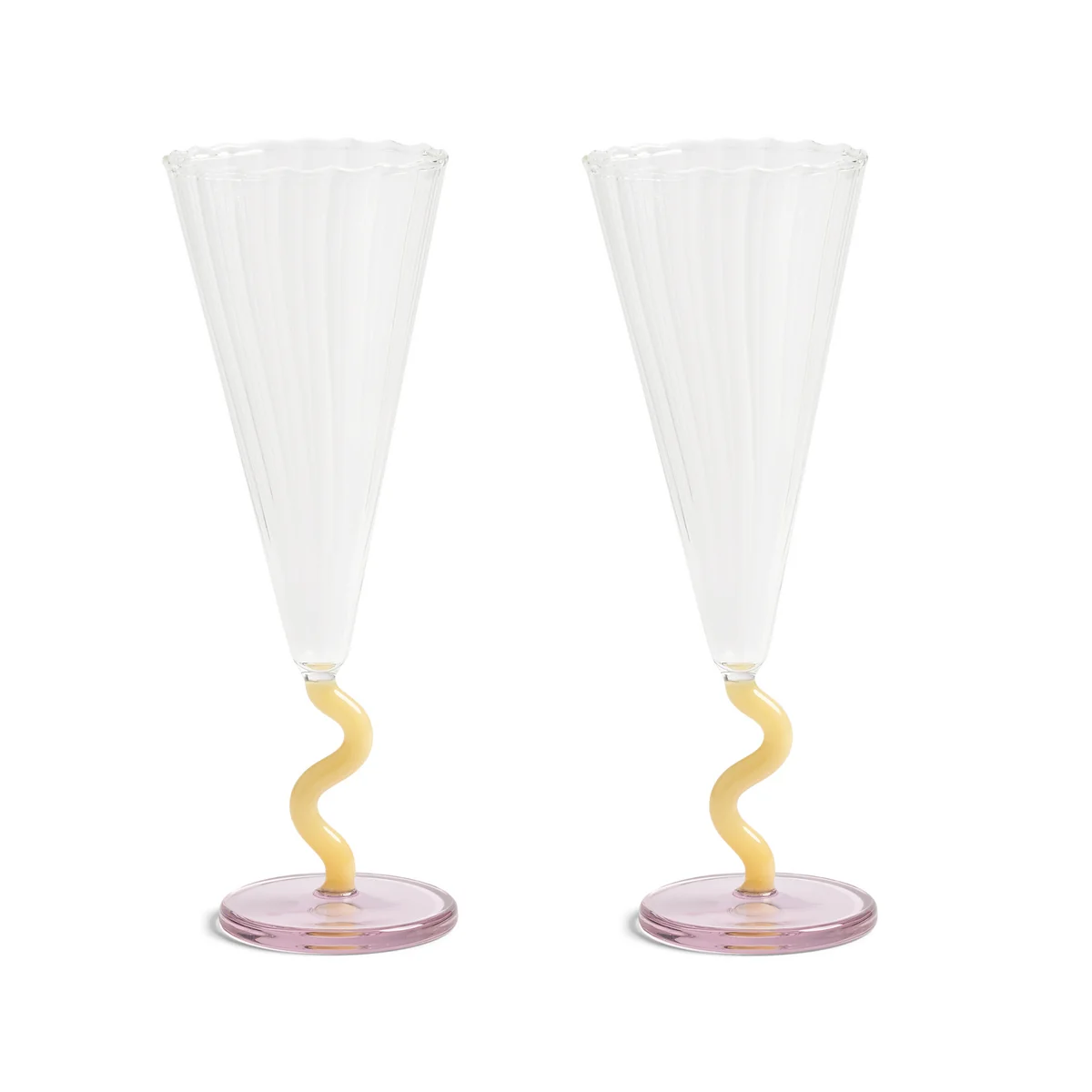 Das Set aus zwei Flute Curve Caramel Gläsern überzeugt durch sein elegantes Design und die warme Farbgebung. Gefertigt aus feinem, farbigem Glas, zeichnen sich die Gläser durch ihre subtile, geschwungene Form aus, die jedem Anlass eine stilvolle Note verleiht. Perfekt für Champagner und Sekt – und ideal kombinierbar mit den Coupe Curve Cocktailgläsern für ein harmonisches Ensemble.