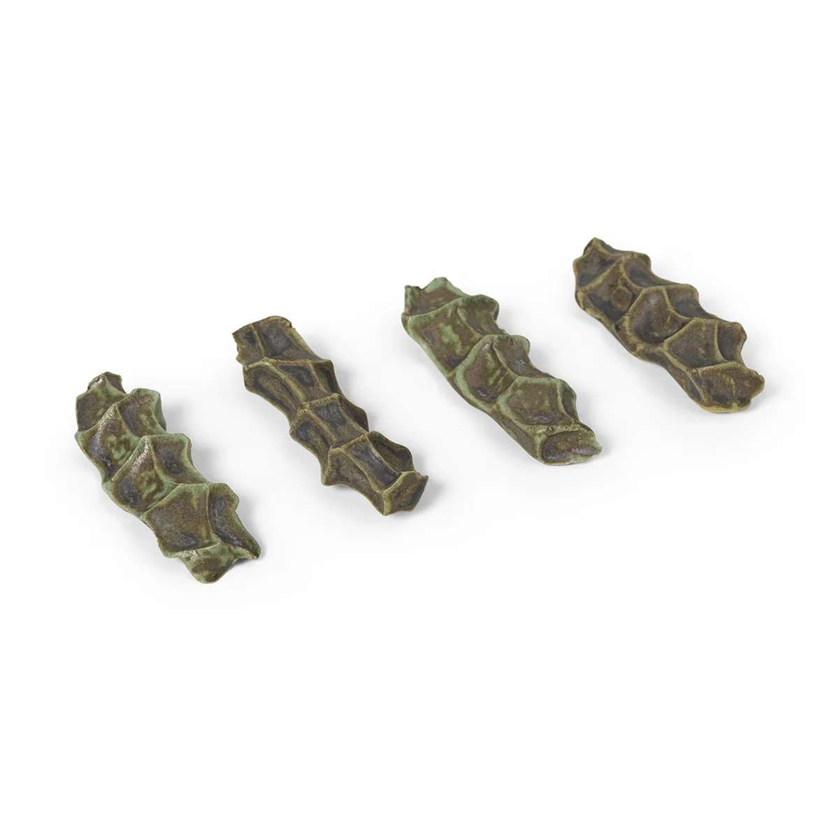 Mit den Serre-Besteckauflagen verleihen Sie jedem gedeckten Tisch eine besondere Note. Die Besteckauflagen sind aus Ton gefertigt, der von einem Handwerker einzeln von Hand gepresst wurde. Jedes Stück weist einzigartige Fingermulden auf, die direkt auf den Namen "Serre" verweisen, was auf Französisch "drücken" bedeutet. Die vier Besteckauflagen sind mit einer reaktiven Glasur versehen, die ihren handwerklichen Ausdruck unterstreicht. Sie sind in einer hübschen, wiederverwendbaren Holzkiste mit vier Fächern verpackt, die sich ideal zum Verschenken eignet, aber auch zur Aufbewahrung der Stücke, wenn sie nicht gebraucht werden.