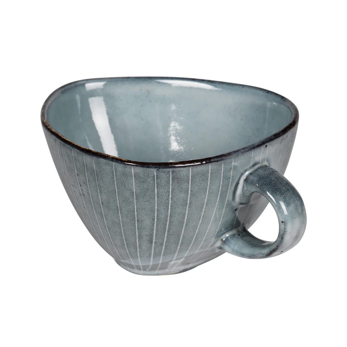 Mit der Nordic Sea Sauciere kann dem Esstisch ein Hauch Eleganz verliehen werden. Diese Schale aus reaktiv glasiertem Steinzeug hat eine sanfte blaue Farbe, die an die ruhige Schönheit der nordischen Meere erinnert. Dank der reaktiven Glasur weist jedes Stück ein einzigartiges Muster auf, das jede Schüssel zu einem Unikat in der Geschirrkollektion macht.