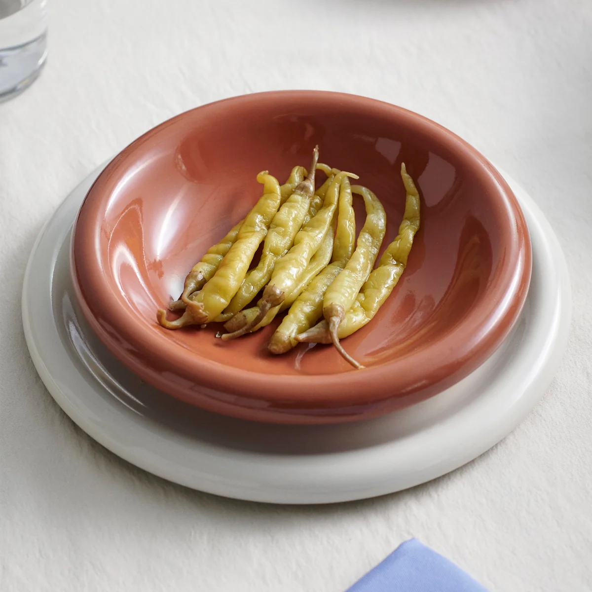 Das niedrige, geschwungene Design der Schale und der gerollte Rand, gepaart mit der sanften Haptik und den ausgewogenen Proportionen, vermitteln ein Gefühl der Stabilität, das die Nutzbarkeit der Schale erhöht. Die in Portugal aus strapazierfähiger Terrakotta gefertigte Barro Schale ist in einer Reihe von Hochglanzfarben erhältlich, die unendlich viele individuelle Kombinationen durch Zusammenstellen oder Mischen ermöglichen. Die Schalen werden praktischerweise im 2er-Set angeboten.