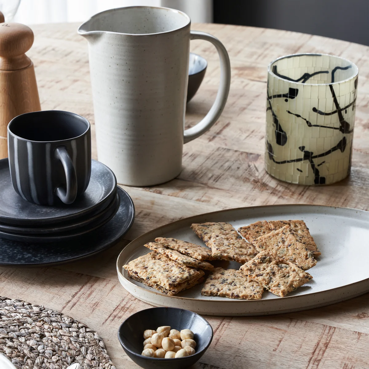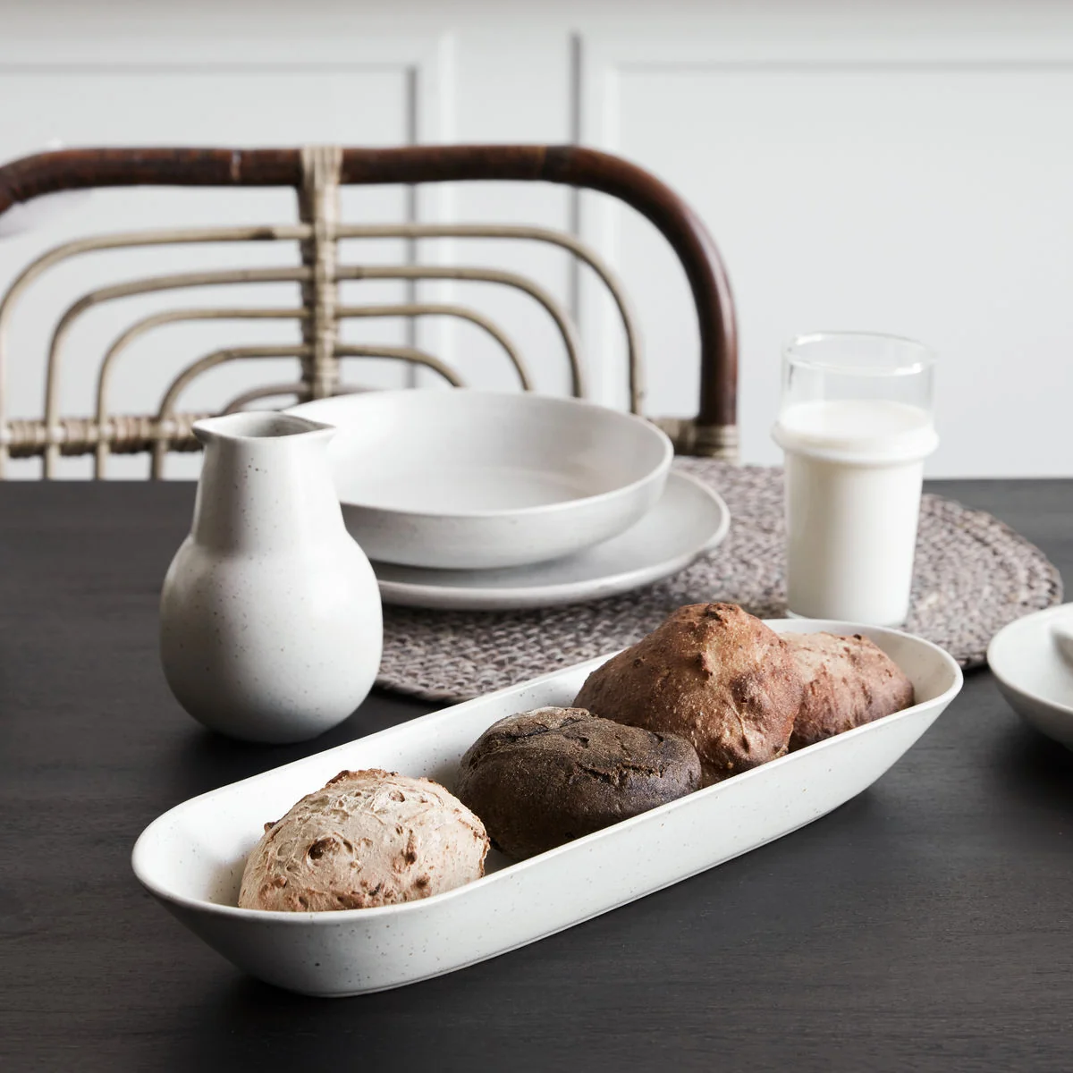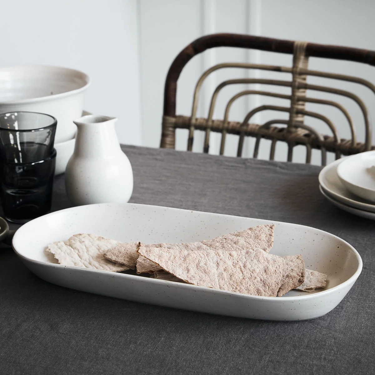 House Doctor - Pion Servierschale 35 x 11.5 x 4.5 cm, grau / weiss