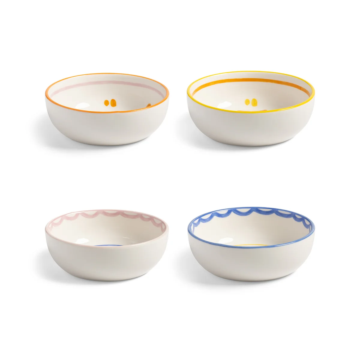 Die Boavista Schale von &klevering verleiht Ihrem Tisch einen künstlerischen Touch und setzt stilvolle Akzente. Das Set aus vier kleinen Schalen besticht durch Designs, die von dynamischen Pinselstrichen inspiriert sind. Hergestellt aus hochwertigem Porzellan, eignen sich die Schalen ideal zum Servieren von Dips, Snacks oder Desserts und ergänzen grössere Servierschalen, wie beispielsweise eine Salatschale, auf harmonische Weise. Dank ihrer vielseitigen Grösse fügen sie sich perfekt in jede Tischdekoration ein und schaffen ein elegantes Ambiente. Verpackt in der typischen &k-Box sind sie zudem ein durchdachtes Geschenk oder ein charmantes Upgrade für Ihre eigene Geschirrkollektion.