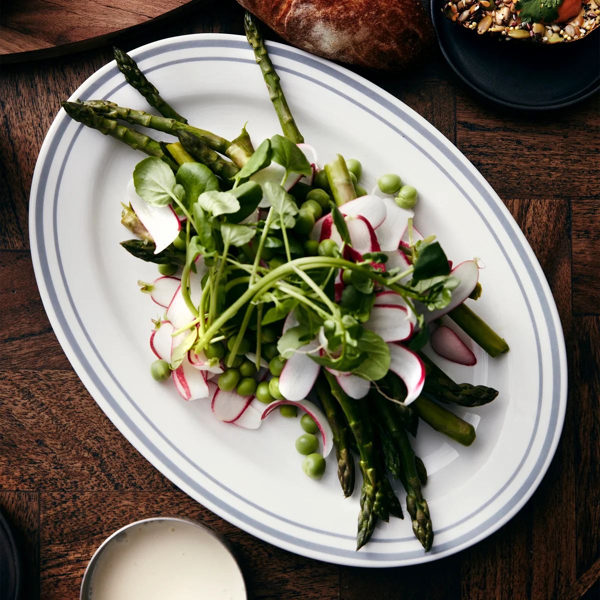 Die Bistro Schale aus dem dänischen Hause Nicolas Vahé. Der Tellerrand ist mit zwei grauen Streifen verziert, die das Essen einrahmen und in den Vordergrund rücken. Wie der Name schon sagt, ist die Schale namens Bistro perfekt, um das Essen ganz ungezwungen wie in einem französischen Bistro zu servieren. Die Schalen können ideal mit dem Rest der Bistro-Kollektion von Nicolas Vahé kombiniert werden.