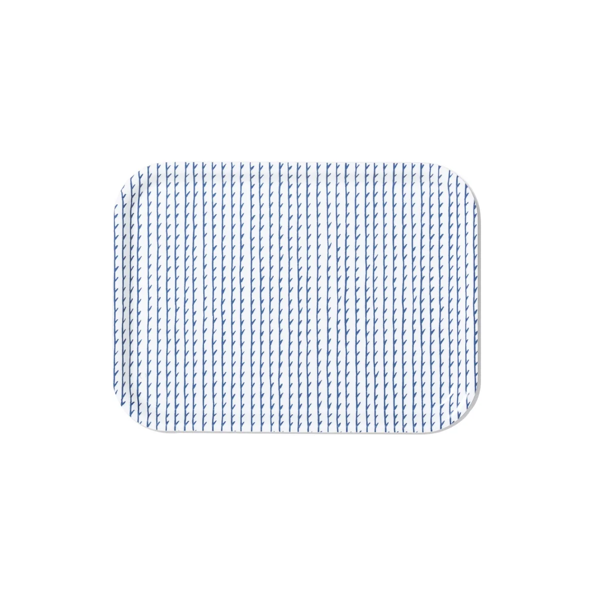 Das Tablett gehört zu einer Serie an Objekten, die mit dem akkuraten und dennoch verspielten Motiv der beiden Brüder verziert wurden. Rivi – Finnisch für „Linie“ – überträgt die parallelen Linien und verlängert sie in beiden Richtungen ins Endlose. Das Muster ist das erste Design von Ronan & Erwan Bouroullec für Artek.
