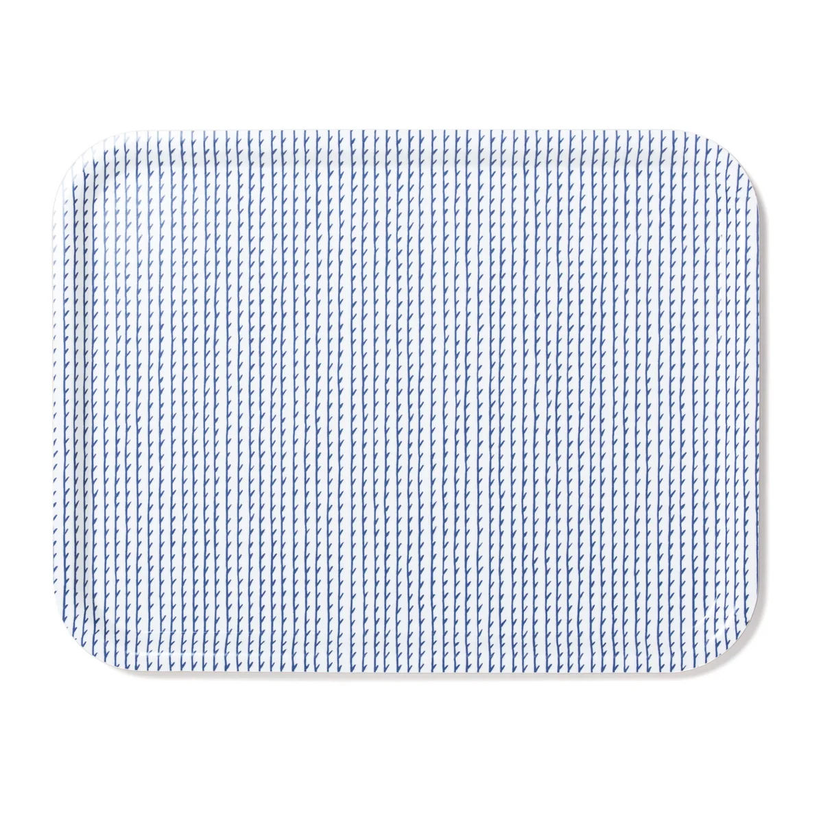 Das Tablett gehört zu einer Serie an Objekten, die mit dem akkuraten und dennoch verspielten Motiv der beiden Brüder verziert wurden. Rivi – Finnisch für „Linie“ – überträgt die parallelen Linien und verlängert sie in beiden Richtungen ins Endlose. Das Muster ist das erste Design von Ronan & Erwan Bouroullec für Artek.