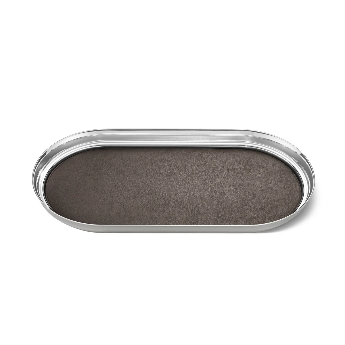 Das Manhattan Tablett von Geog Jensen ist stilvolle Unterlage für den heimischen Barbereich und wird aus Edelstahl hergestellt. Das Tablett gehört zu der Manhattan Kollektion und ist optional mit einem Lederboden erhältlich, der dafür sorgt, dass Flaschen und Gläser auf dem Tablett nicht verrutschen. Ob mit oder ohne Leder, das Tablett wird zum Hingucker auf jedem Tisch und setzt Gläser sowie Barutensilien gekonnt in Szene.