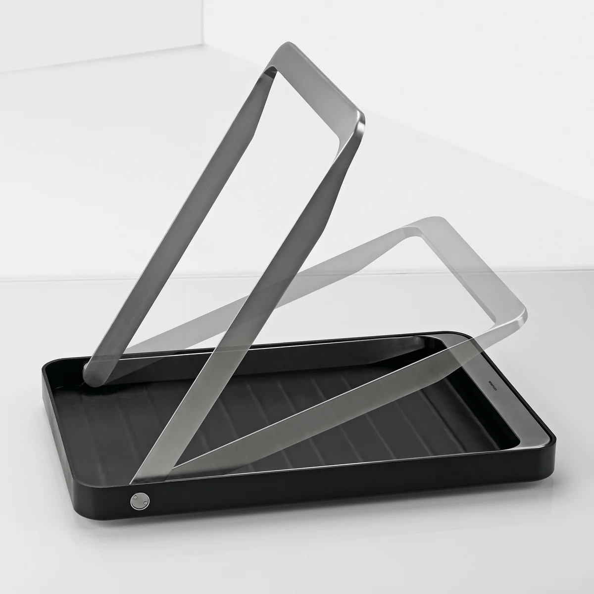 Steltons neues "Take away"-Serviertablett ist eine praktische Hilfe im Alltag, um z.B. Geschirr sicher von der Küche in das Wohnzimmer zu tragen - oder zum Picknick nach draussen. Es bietet einen stabilen, ergonomischen sowie versenkbaren Griff mit Schaumstoffauflage und liegt normal fast unsichtbar im Rahmen verborgen. Das Tablett ist mit einer Silikonauflage versehen, die das unabsichtliche Verrutschen beim Tragen verhindert und auch zum Säubern herausgenommen werden kann.