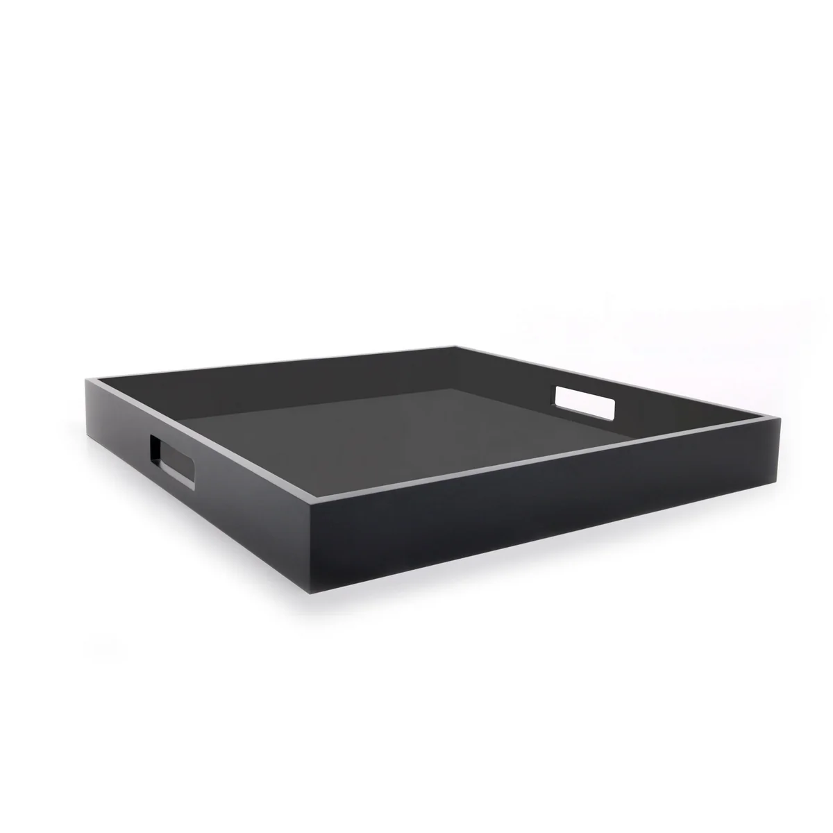 Die Seiten des quadratischen Tabletts sind recht hoch, sodass Gläser, Flaschen und Schälchen mühelos transportiert und serviert werden können.