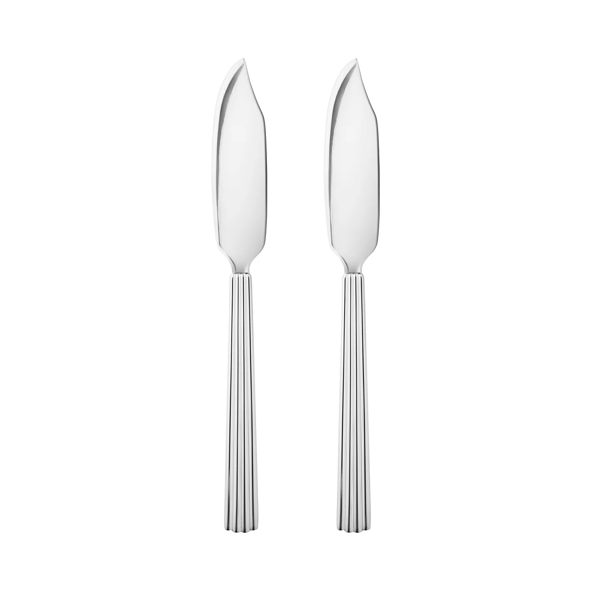 Das Bernadotte Fischmesser von Georg Jensen ist ein funktionales Teil, das seinen Platz in jeder Küche einnimmt. Hergestellt aus Edelstahl, wirkt es nicht nur besonders edel, sondern betont auch die langen Rillen und die einzigartige Form. Das Bernadotte Fischmesser verkörpert den unverkennbaren Stil des Designers. Das Messer ist in einem praktisches 2er-Set erhältlich.