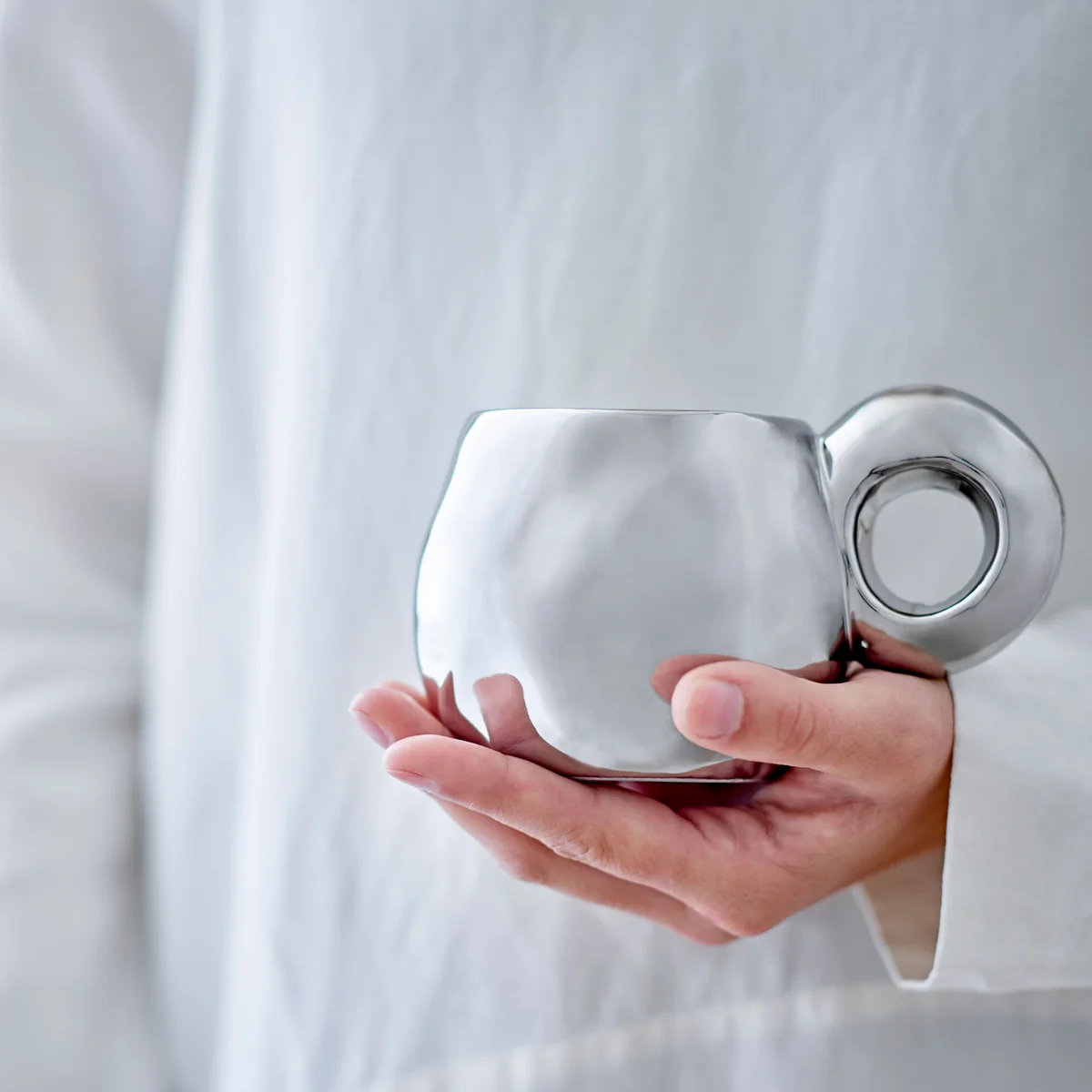 Die Shine Tasse besticht durch ihre galvanisierte Oberfläche, die ihr ein elegantes Chrom-Finish verleiht. Der grosse, runde Henkel sorgt nicht nur für eine komfortable Handhabung, sondern setzt auch ein dekoratives Design-Highlight. Ob auf dem Tassenregal oder beim Kaffeegenuss – diese Tasse bringt modernen Glanz in jede Küche.