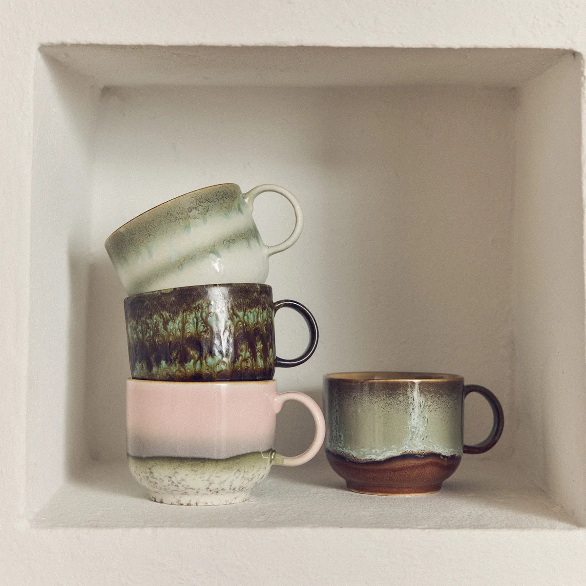 Die 70's Teetasse von HKliving ist ein willkommenes Highlight unserer beliebten 70er Keramikkollektion. Mit grosszügigen Proportionen und einem komfortablen Henkel neu interpretiert, verbindet diese Tasse traditionelle Teezeremonien verschiedener Kulturen mit einem zeitlos-modernen Design. Die taktile Glasur sorgt für ein angenehmes haptisches Erlebnis und unterstreicht den einzigartigen Charakter dieser Tasse – ein absolutes Must-Have für jeden Teeliebhaber, der seinen täglichen Teegenuss zu einem besonderen Ritual machen möchte.