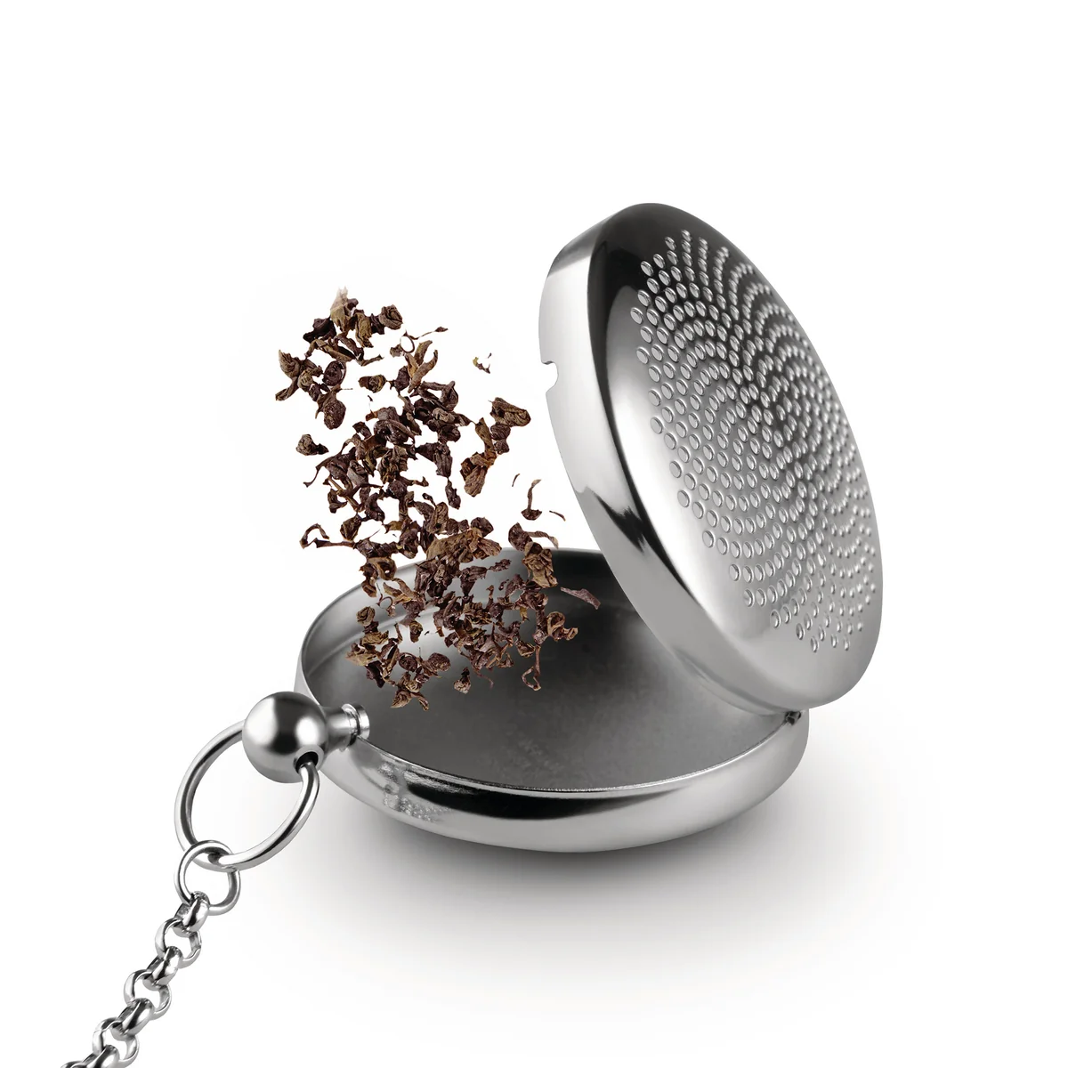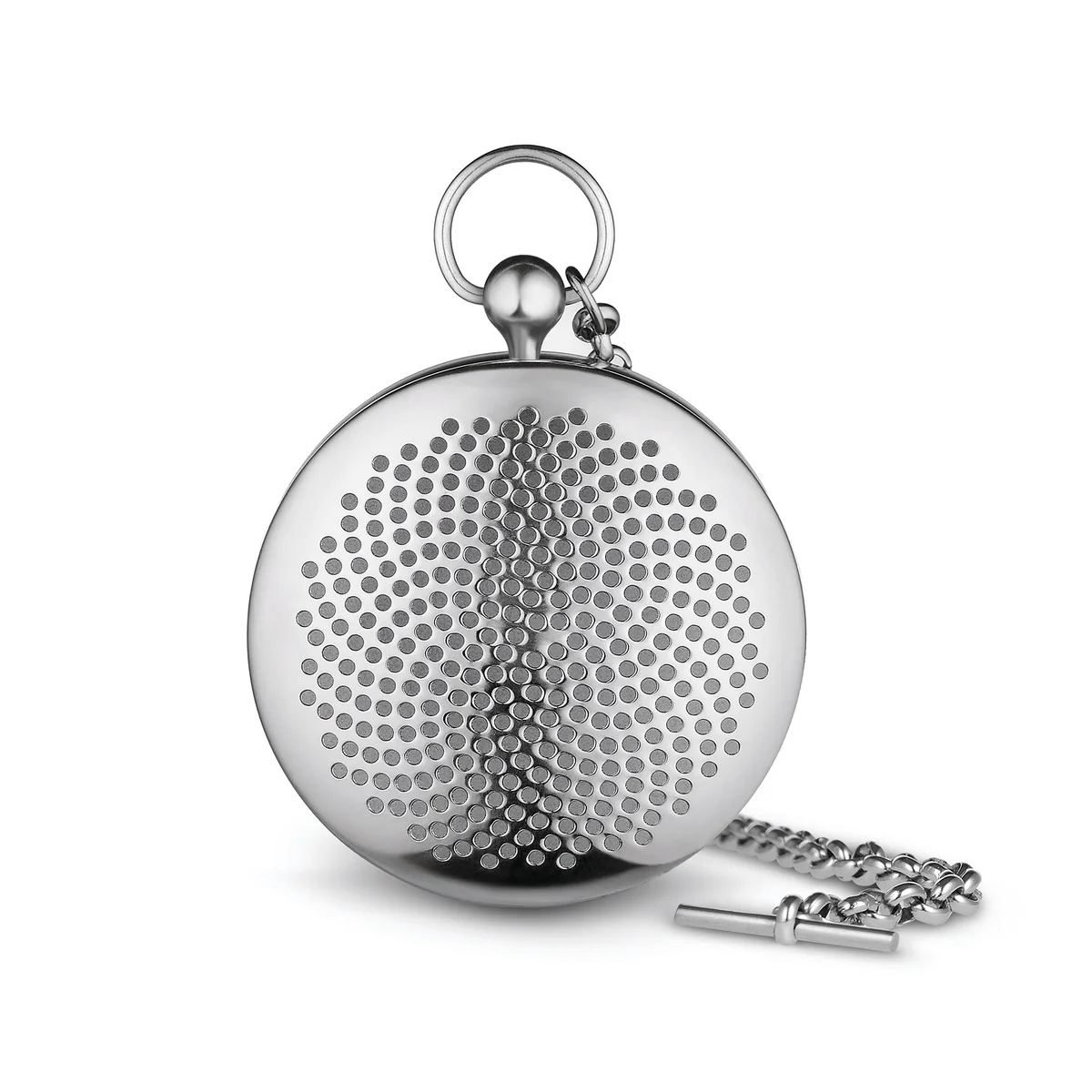 Das Ei hat eine nahezu einladende Wirkung auf Tee-Liebhaber, sich für ein paar entspannte Minuten dem Geschmack ihres aufgebrühten Tees hinzugeben. Dank der einfachen Bedienung kann das T-Timepiece Tee-Ei schnell befüllt und in der Tasse oder der Kanne mit heissem Wasser aufgegossen werden. Die kleinen, runden Löcher, durch die das Wasser fliessen kann, bilden zudem ein interessantes Muster auf dem glänzenden Edelstahlgehäuse.