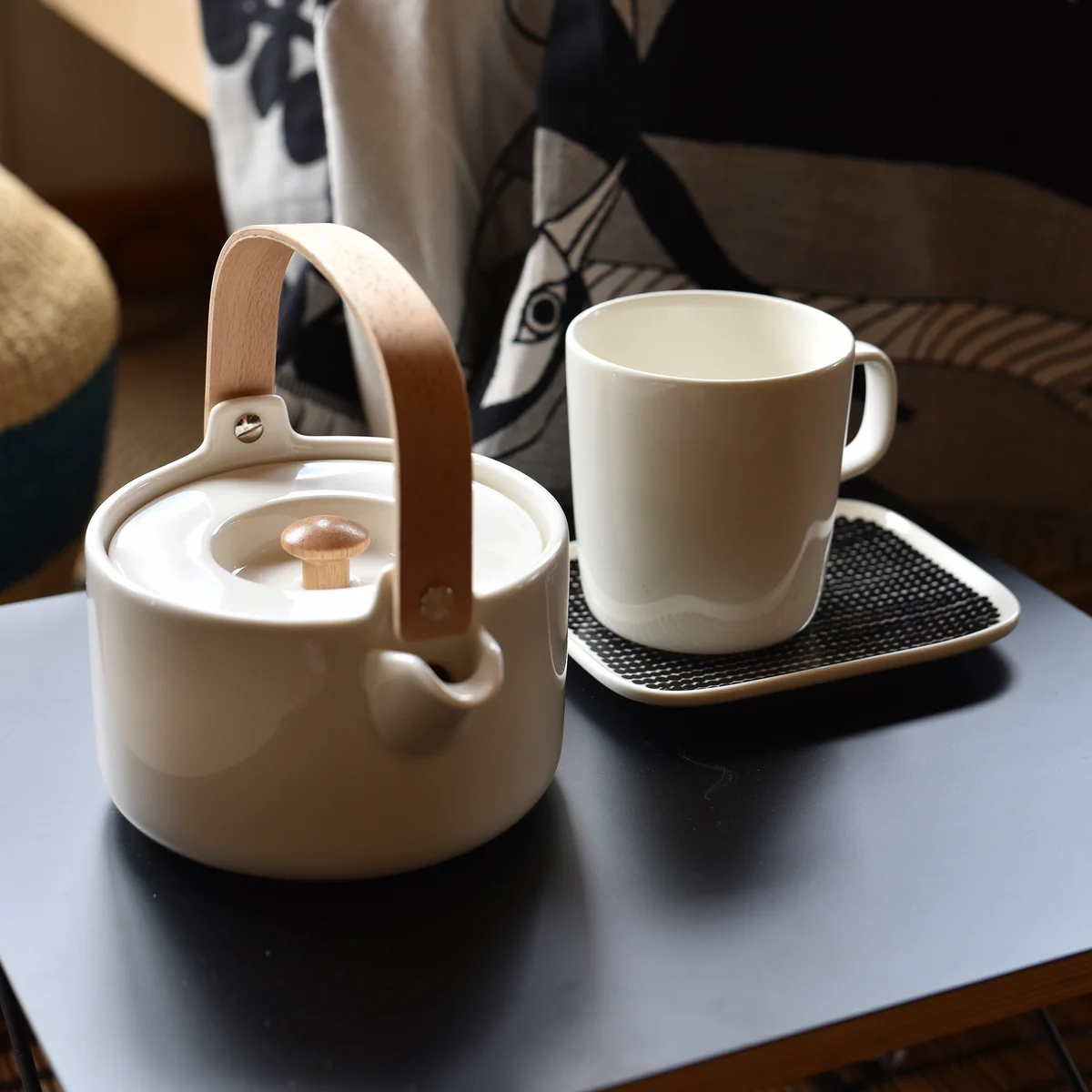 Dezent, klassisch und modern das ist die Oiva Teekanne von Marimeko. Die Kombination von Steinzeug und Holzhenkel macht die Kanne zu einem beliebten Accessoire und Geschenkidee oder Teeliebhaber.