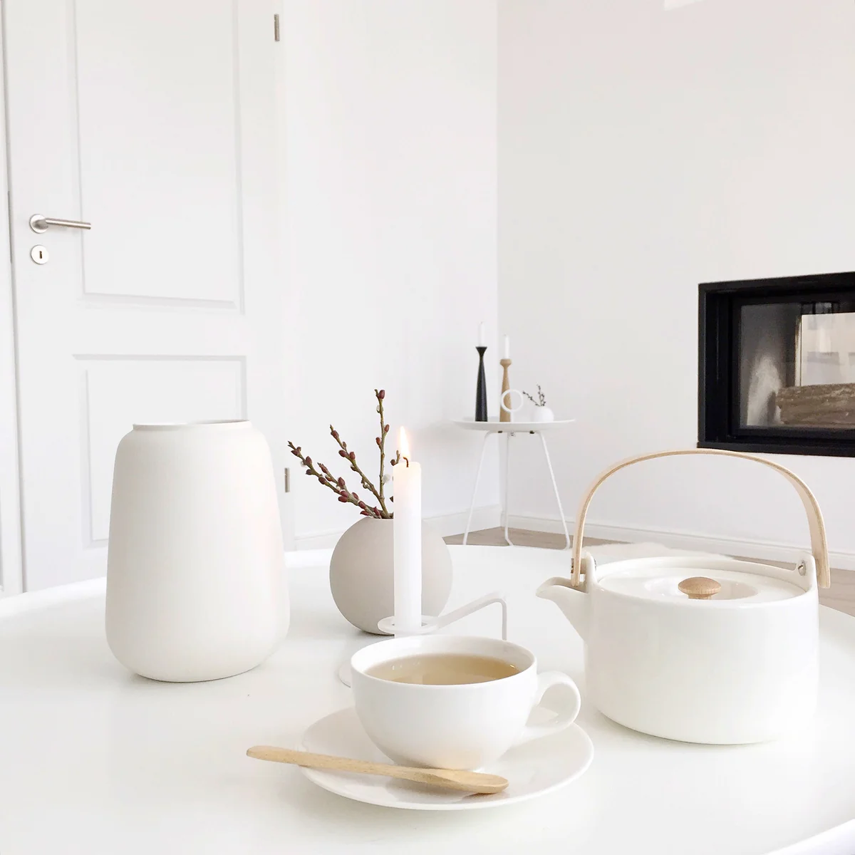 Das Design stammt von Sami Ruotsalainen, der die Oiva Teekanne entworfen hat. Als Teil der Siirtolapuutarha Kollektion ist die dekorative Kanne auch mit einem schwarz-weiss Muster erhältlich. Für alle, die es etwas klassischer mögen ist die Oiva Kanne in Weiss oder Terra die perfekte Teekanne.