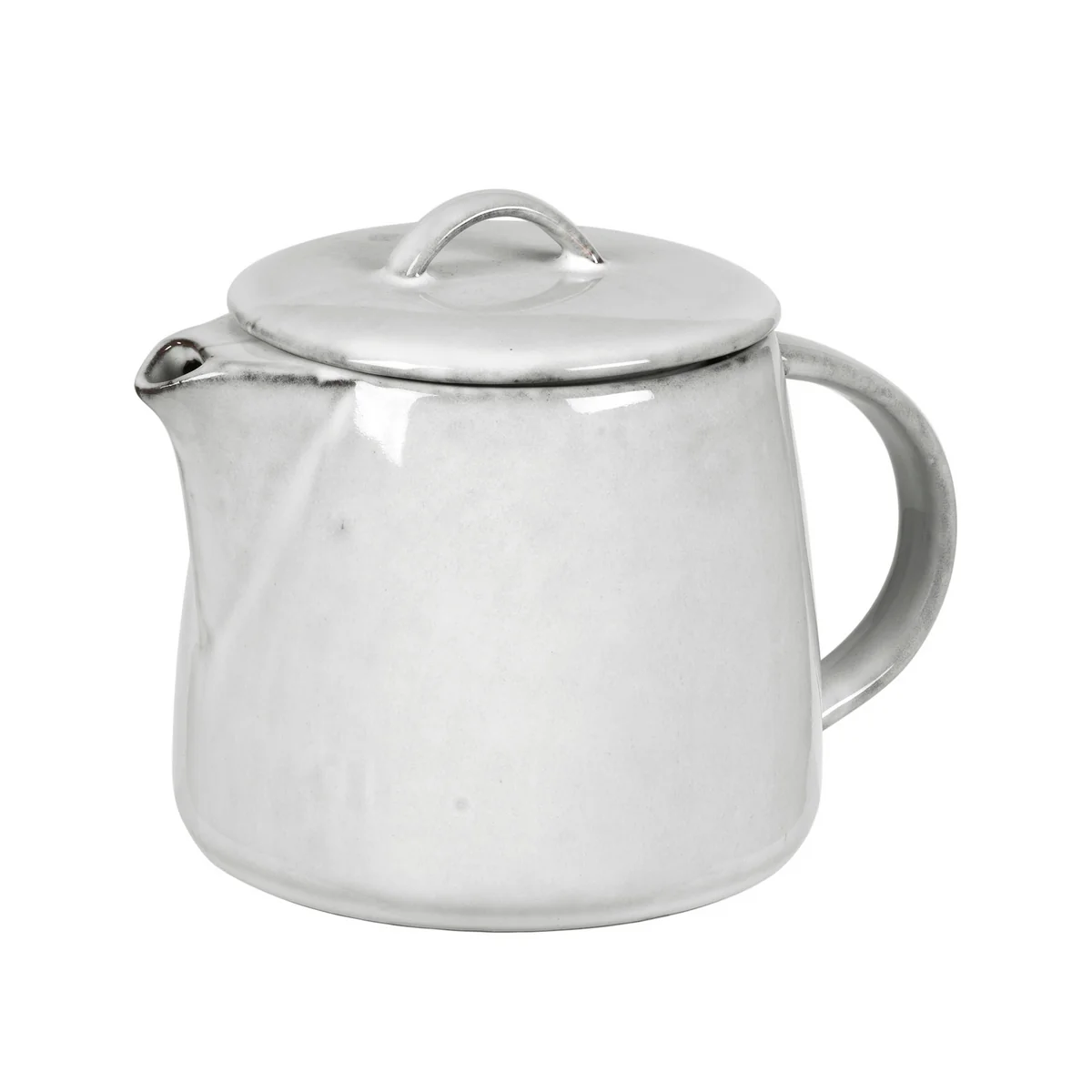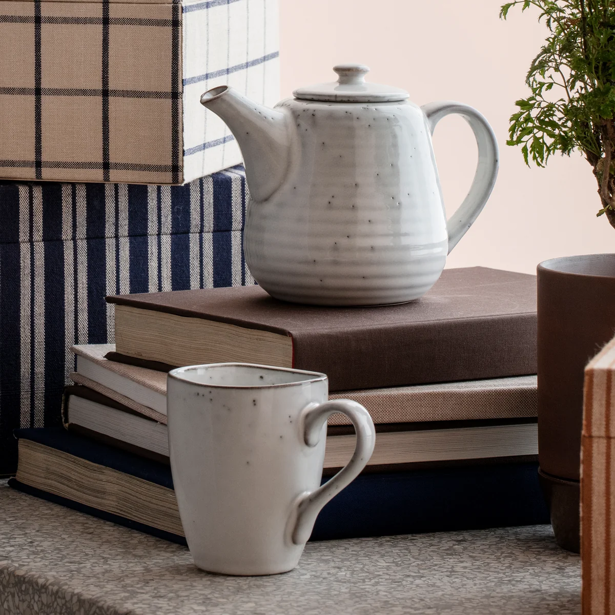 Die Nordic Sand Teekanne ist ein Ausdruck nordischer Schlichtheit und natürlicher Eleganz. Gefertigt aus reaktiv glasiertem Steinzeug im warmen Sandton, besticht sie durch ihre organische Form und individuelle Oberflächenstruktur. Die reaktive Glasur sorgt dafür, dass jedes Stück ein Unikat ist – mit leichten Farbvariationen und lebendiger Tiefe. Die Teekanne eignet sich für entspannte Stunden am Tisch und lässt sich stilvoll mit anderen Teilen der Nordic-Sand-Serie kombinieren.