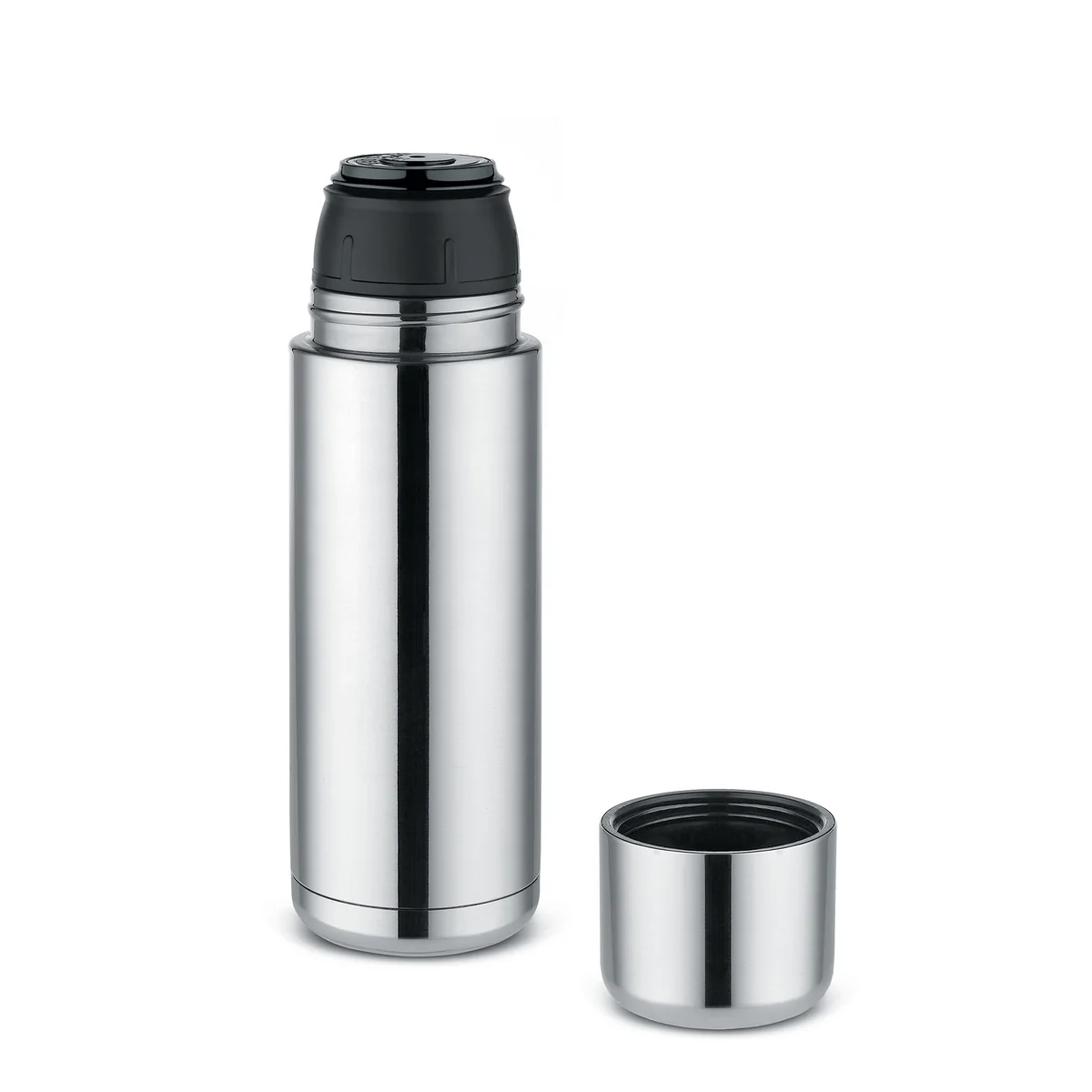 Ein Tee, der von morgens bis abends heiss bleibt – die Nomu Thermoskanne von Naoto Fukasawa für Alessi macht das möglich. Die schlichte Kanne aus glänzendem Edelstahl hält Getränke warm bzw. kalt und ist somit ideal für unterwegs. Verantwortlich für die Isolierung des Getränks ist die Innenbeschichtung aus thermoplastischem Harz.