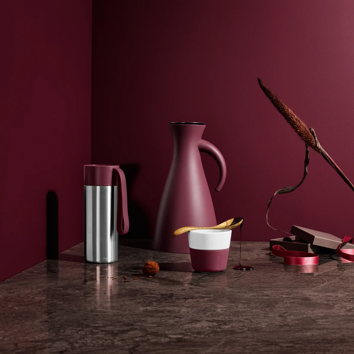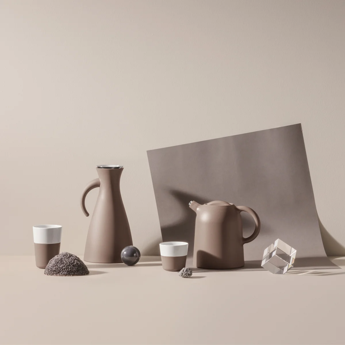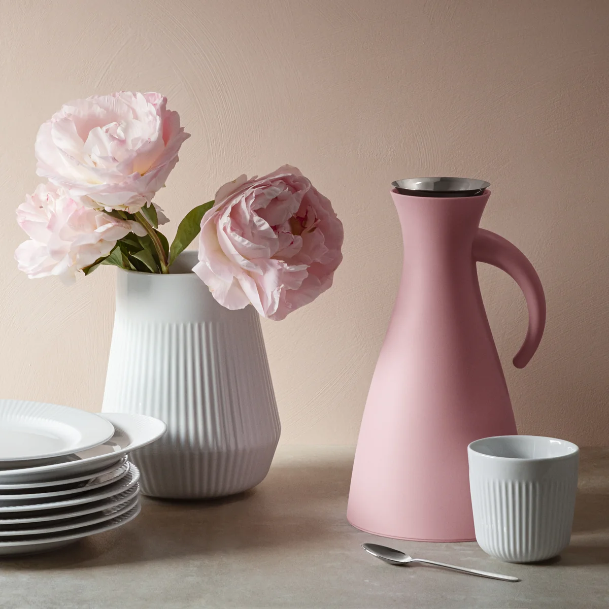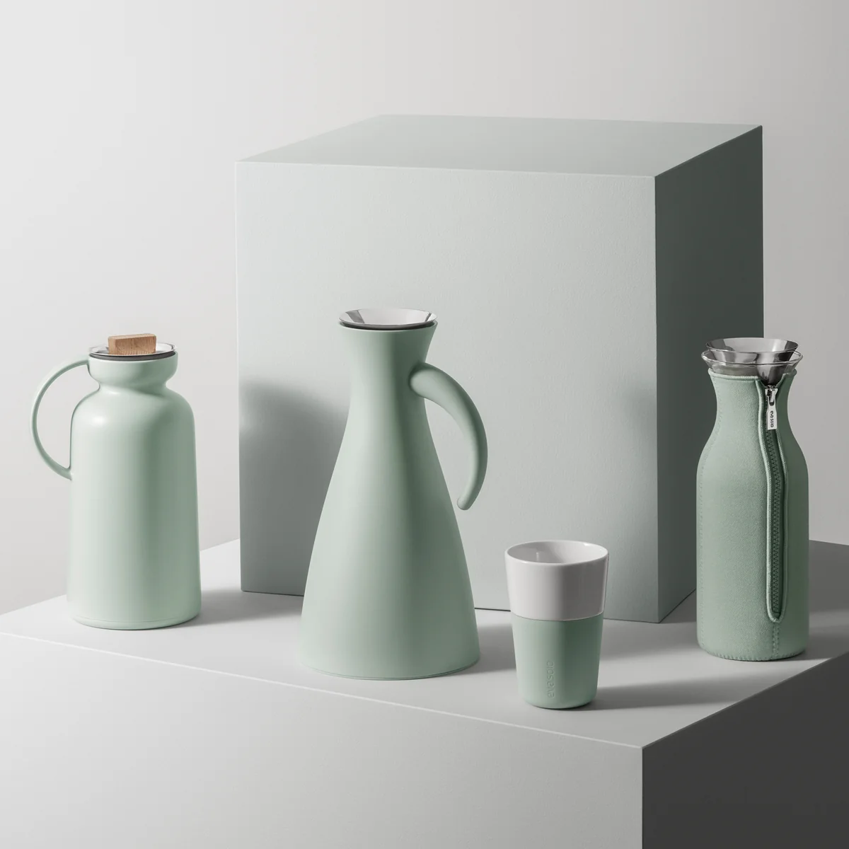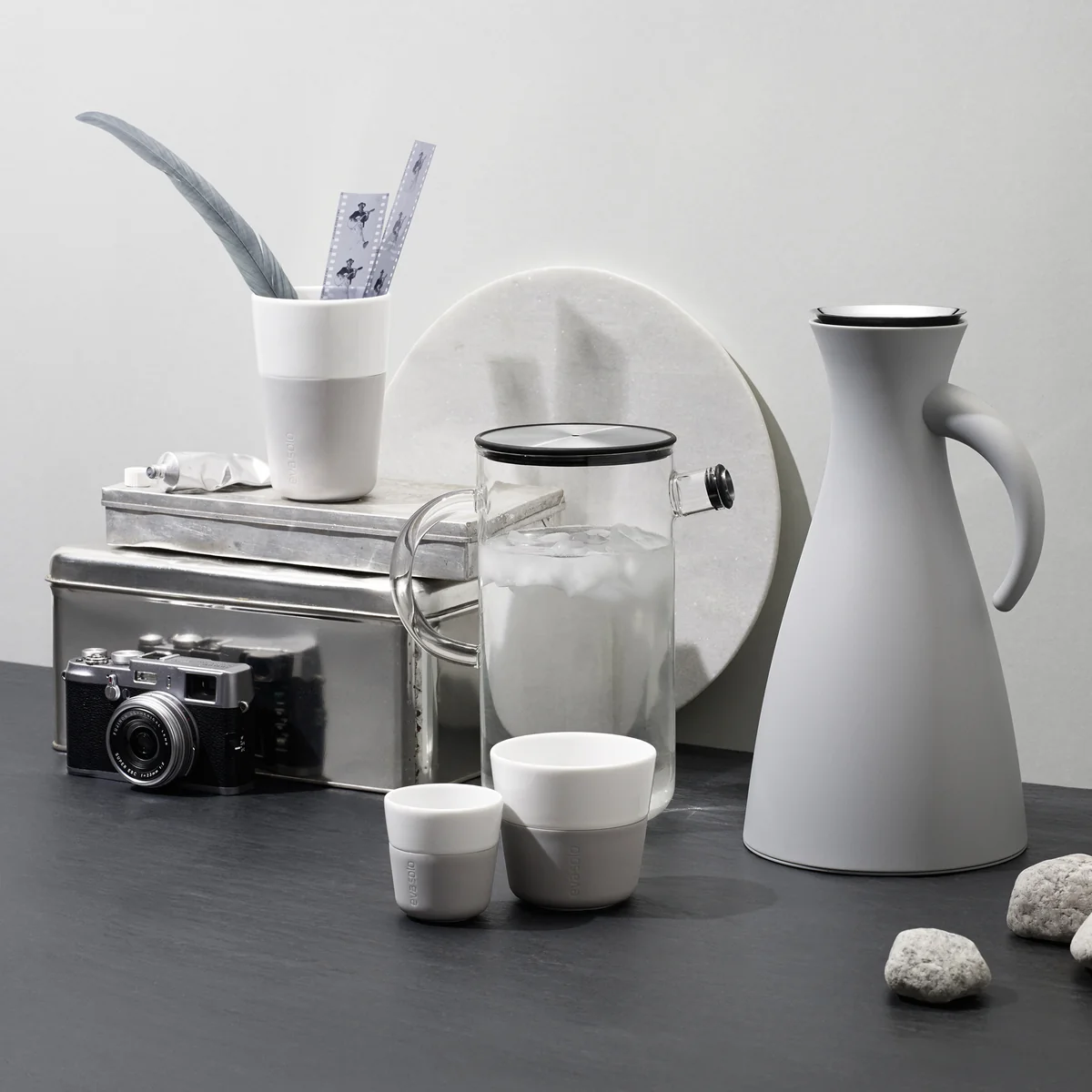 Die preisgekrönte Isolierkannenserie von Eva Solo besteht aussen aus Kunststoff und ist innen mit einem austauschbaren Glaskolben ausgestattet. Sowohl die hohen als auch die niedrigen Varianten haben ein Fassungsvermögen von 1,0 l und sind in verschiedenen Farben erhältlich.