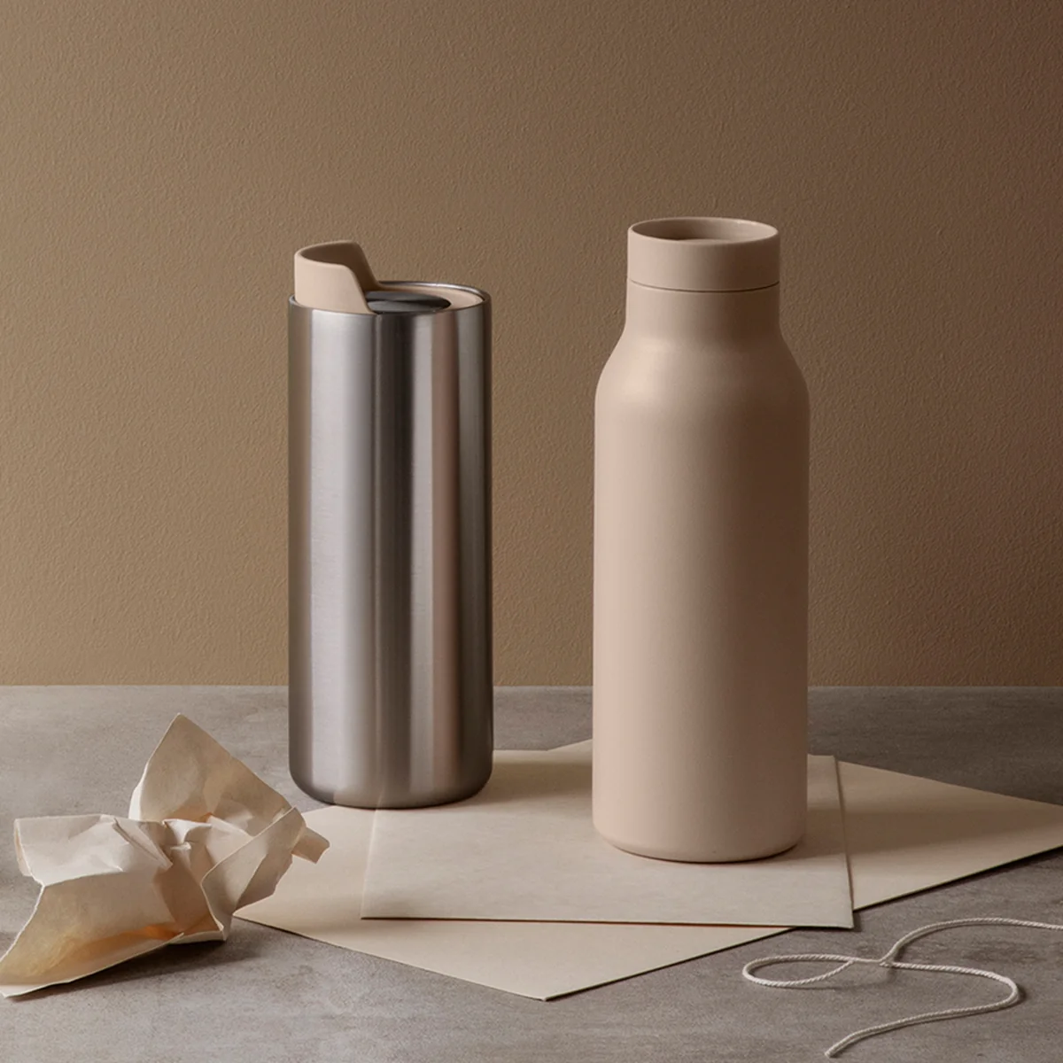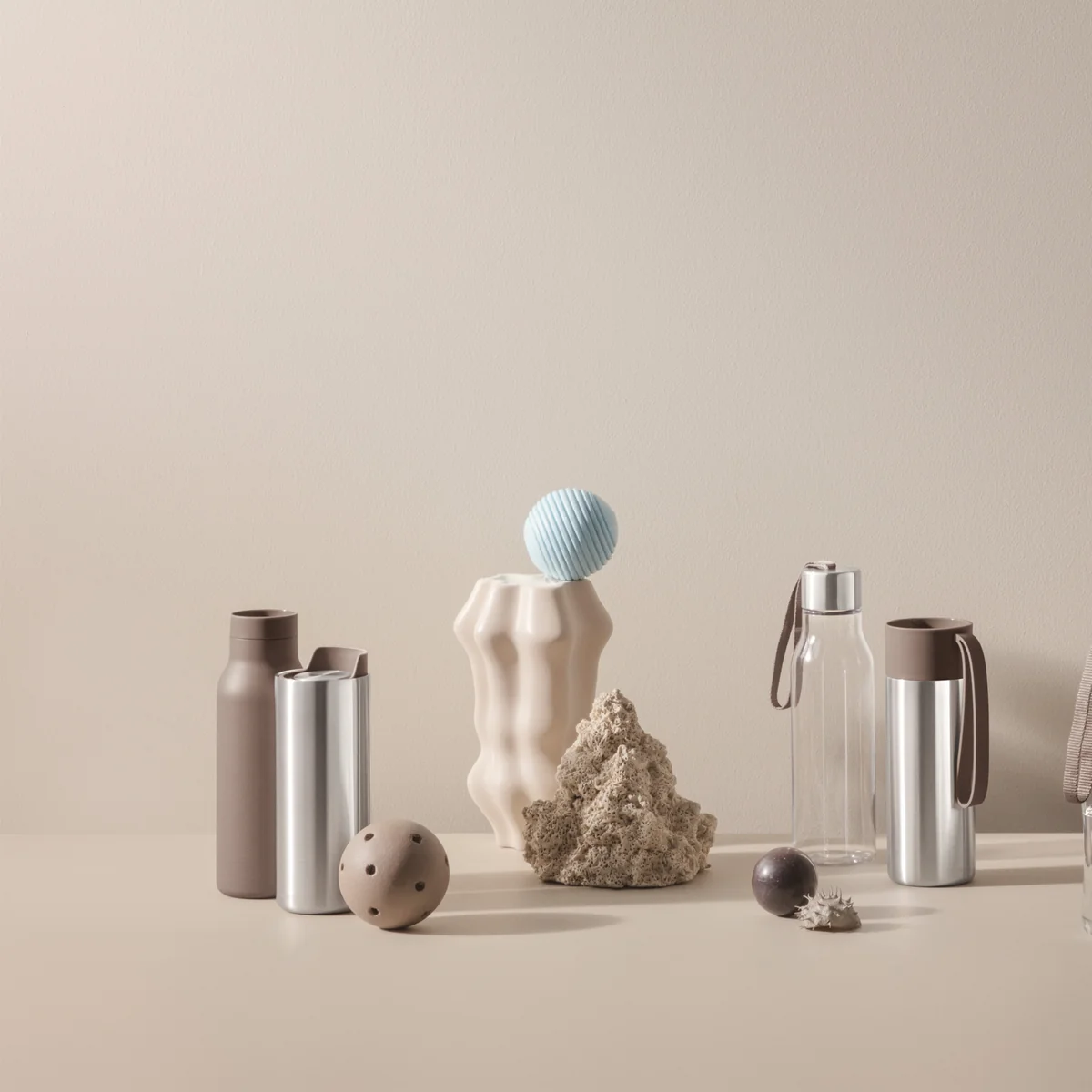 Für einen ganzheitlich skandinavischen Look kann die Urban Thermosflasche mit dem Nordic Kitchen Thermobecher, der Glastrinkflasche und der Rise Isolierkanne von Eva Solo kombiniert werden.