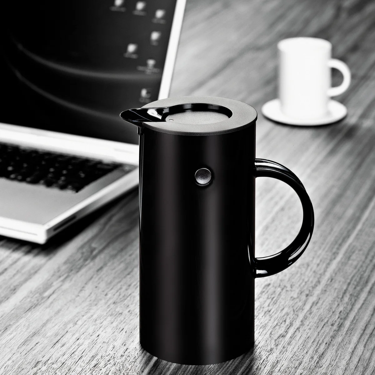 Steltons Isolierkanne mit dem berühmten Kippverschluss von Erik Magnussen ist ein Klassiker. Aufgrund ihres schönen und kompakten Designs, der herausragenden Verarbeitungsqualität und nicht zuletzt wegen des einmaligen Kippverschlusses ist sie ein zeitloses und begehrtes Produkt im Sortiment von Stelton.