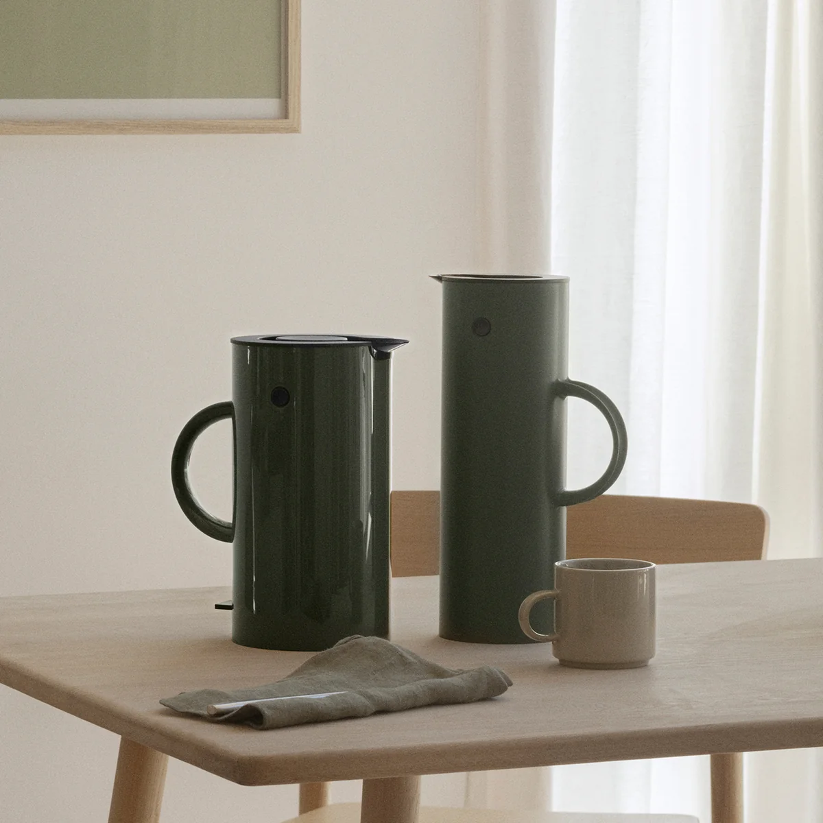 Über die letzten Jahre bekam die klassische Isolierkanne von Stelton dazu einen gewissen Status als Modeikone, die mit ihren Frühjahrs- und Herbstfarben Trends setzt.