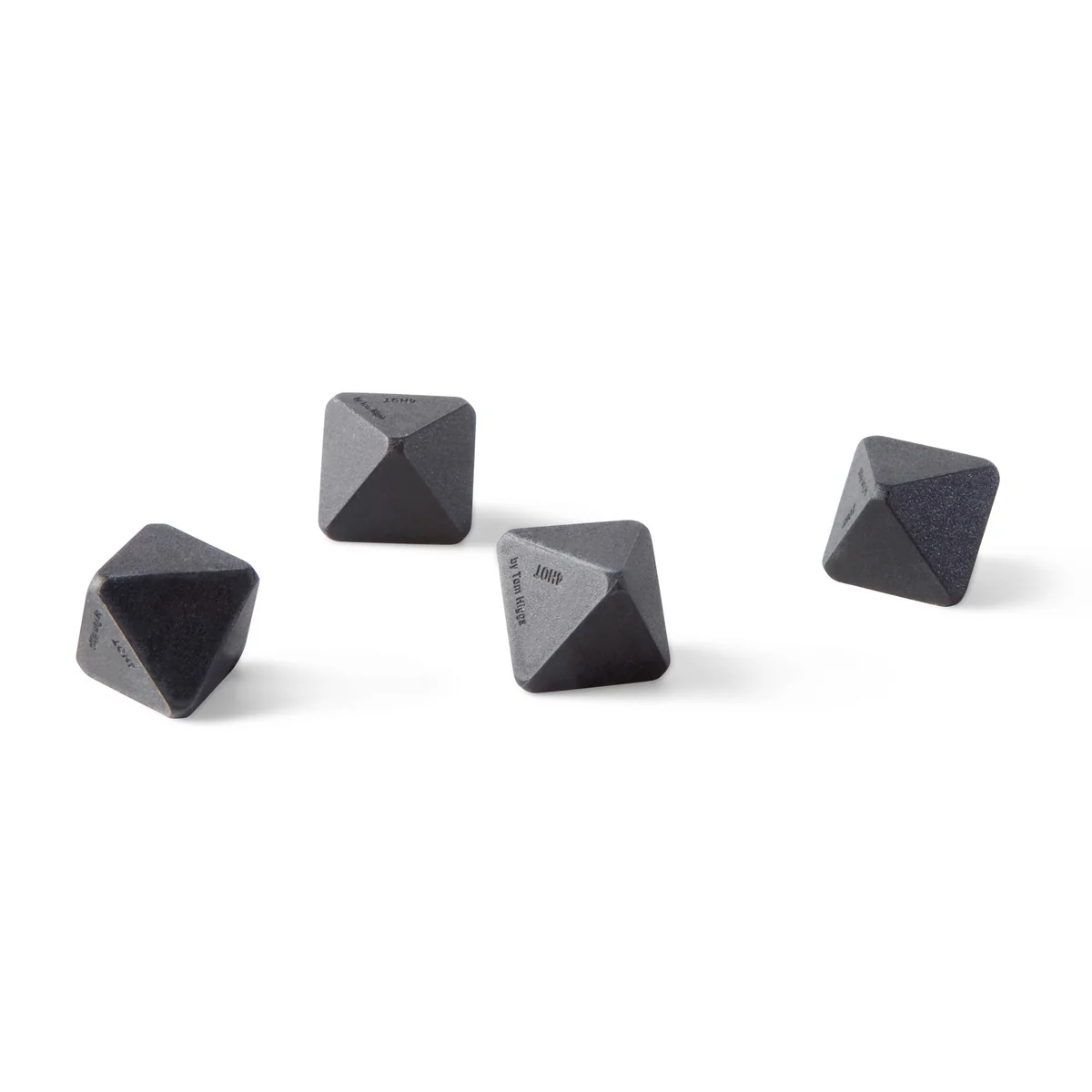 Die obere Fläche der Oktaeder bietet eine sichere und stabile Unterlage für heisse Töpfe und Pfannen, wodurch die darunterliegende Oberfläche vor Hitze geschützt bleibt. Wenn die Untersetzer nicht benötigt werden, können sie platzsparend in der Schublade aufbewahrt werden. Die 4Hot Untersetzter sind im 4er-Set erhältlich.