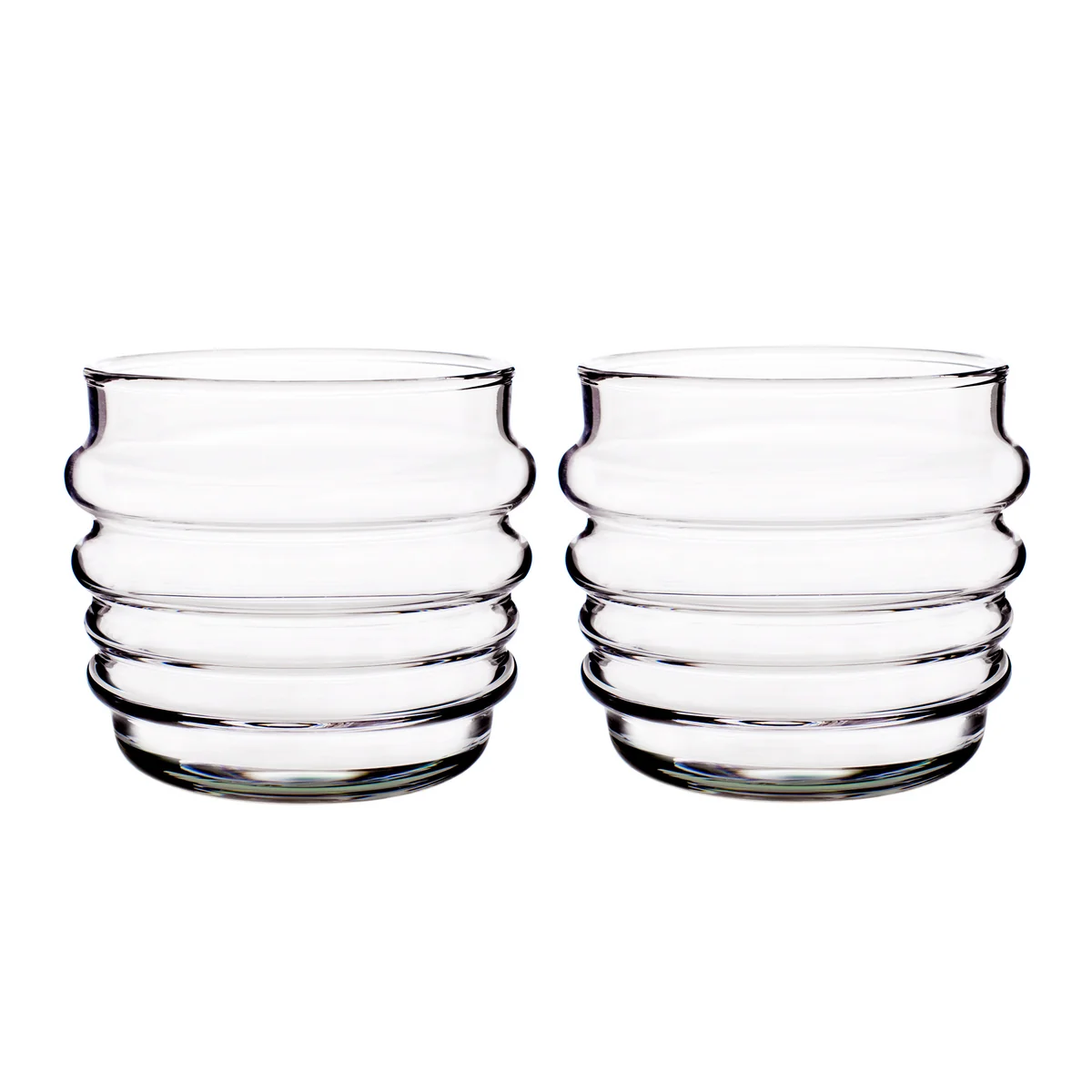 Die Wasser- und Weingläser erinnern jedoch eher an die Form leichter Wellen im Wasser, wodurch die Trinkgläser eine dekorative und interessante Form bekommen. Die Gläser werden aus Glas hergestellt und sind spülmaschinenfest. Im praktischen 2er-Set erhältlich sind die Gläser auch eine schöne Geschenkidee und machen sich besonders gut mit der passenden Sukat Makkaralla Karaffe auf jedem Tisch.