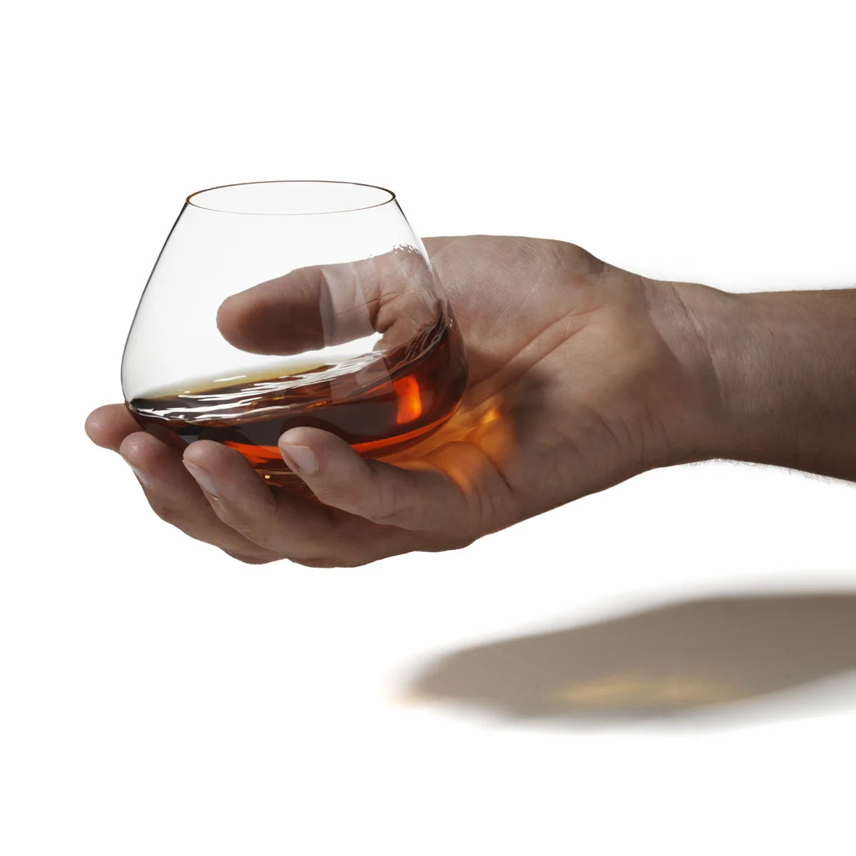 Mit seiner runden Form lädt das Likörglas zum Schwenken ein und erhöht das beinahe intime und meditative Erlebnis des Likörtrinkens. Das Likörglas akzentuiert dabei die tiefe Farbe und die sanfte Bewegung der Flüssigkeit. Durch das Fehlen eines konventionellen Standfusses bewegt sich das Glas auch auf dem Tisch sanft hin und her und erlaubt dem Likör, seinen Duft im ganzen Raum zu verbreiten.