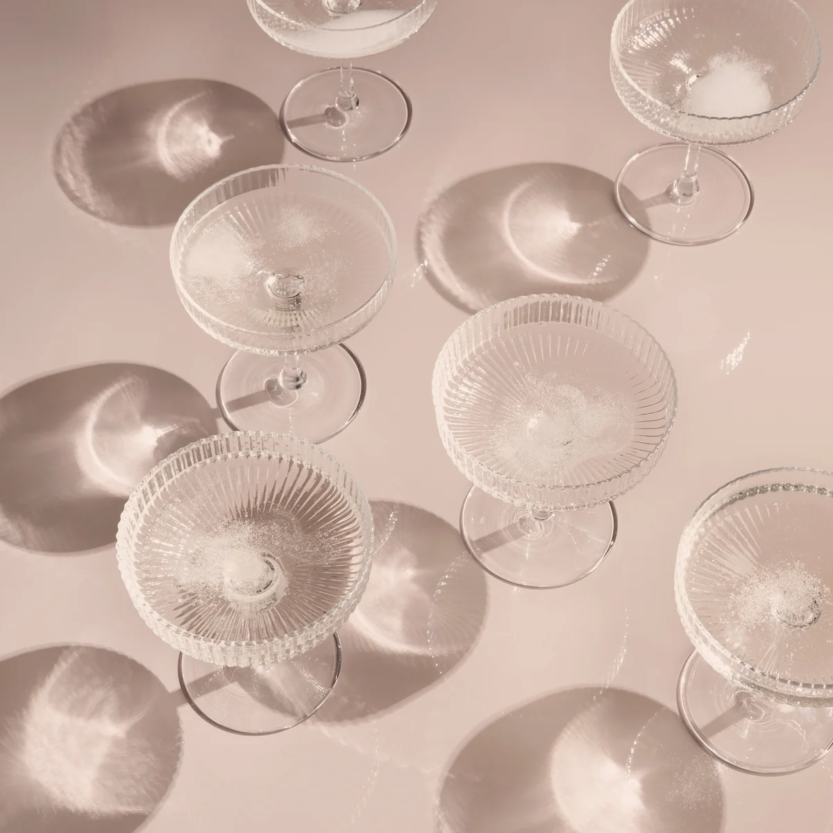 Das Ripple Champagnerglas von Ferm Living zeichnet sich durch seine geriffelte Oberflächenstruktur aus, die ihm den besonders edlen Look der 20er Jahre verleiht. Das klassische Schaumweinglas ist mundgeblasen und sorgfältig verarbeitet, sodass der gute Tropfen Champagner stilvoll genossen werden kann.