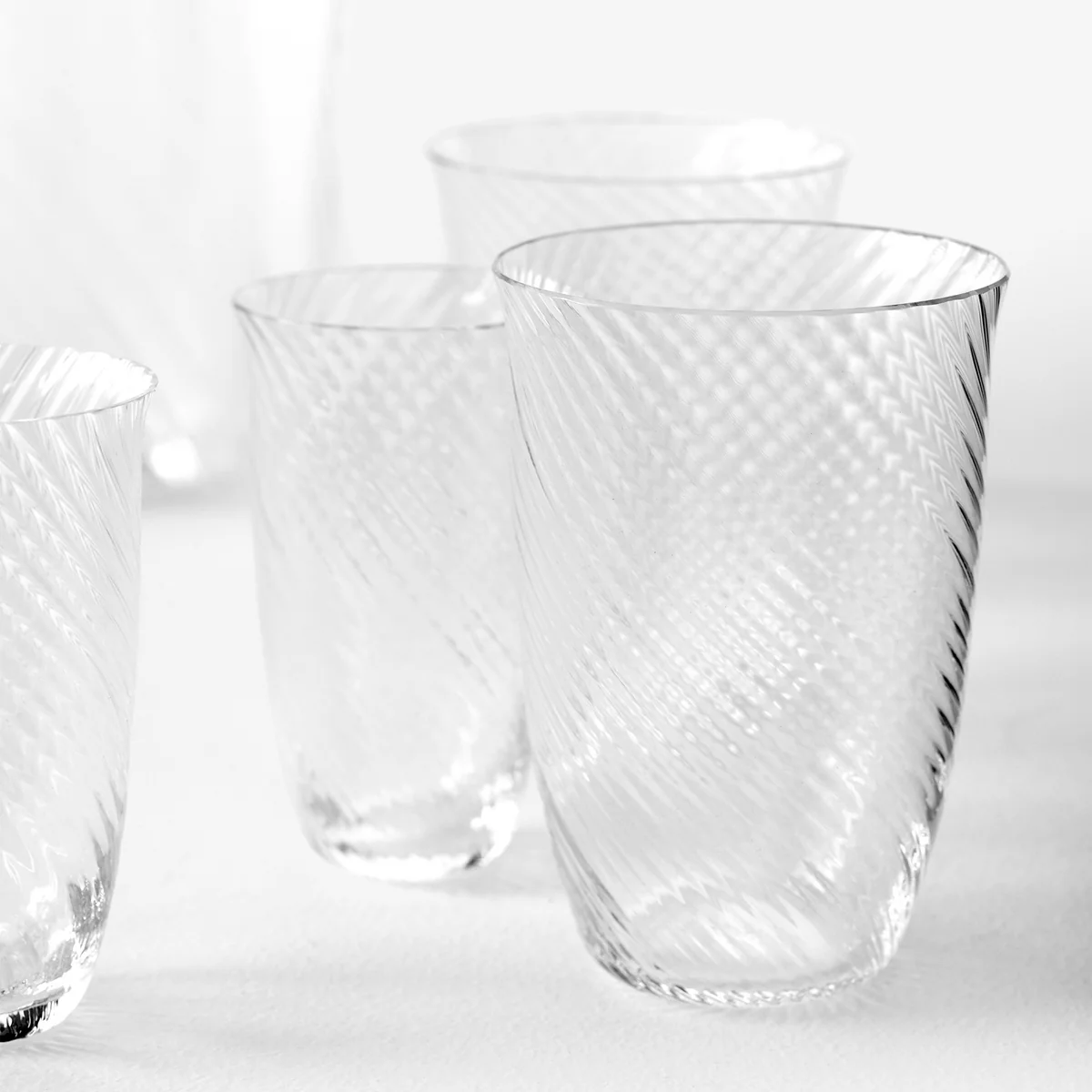 Das Collect Trinkglas von &Tradition wird im schlichten und doch ausgesprochen modernen 2er-Set geliefert. Es besticht durch ein subtiles Strudelmotiv, das die wirbelnde Natur des Wassers widerspiegelt. In Anlehnung an ein häufiges Merkmal im asiatischen Design haben die Gläser einen leicht nach aussen abgerundeten Rand, der einen natürlichen Platz für die Lippe schafft.