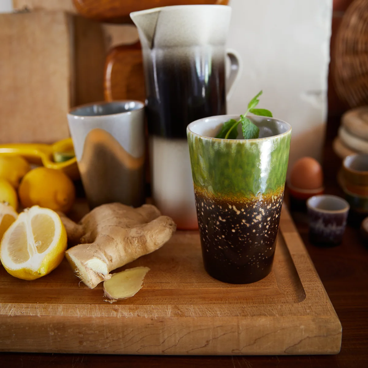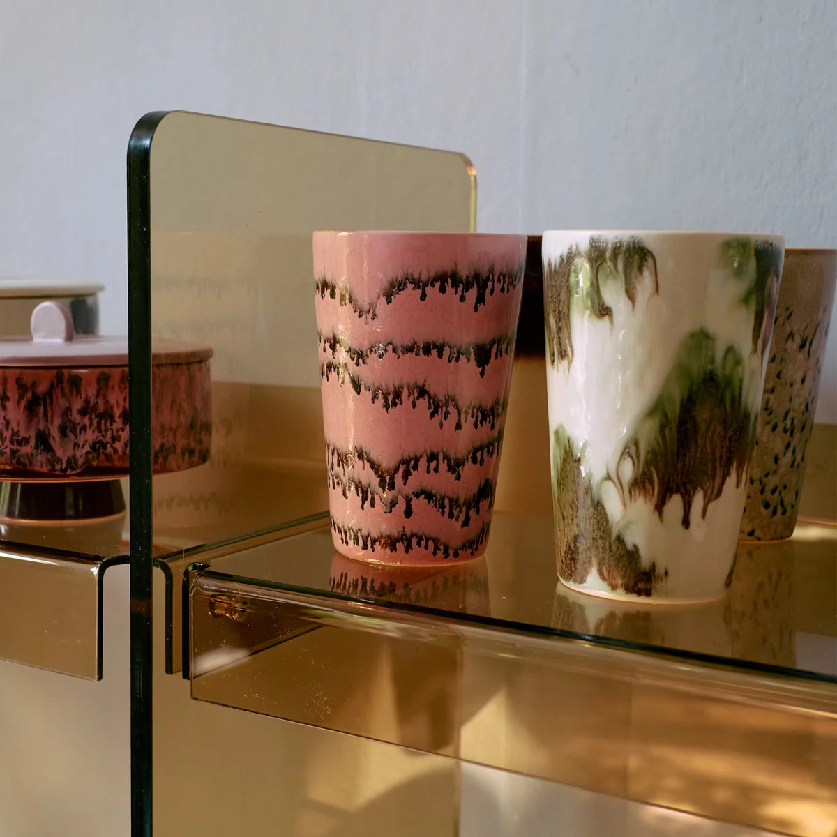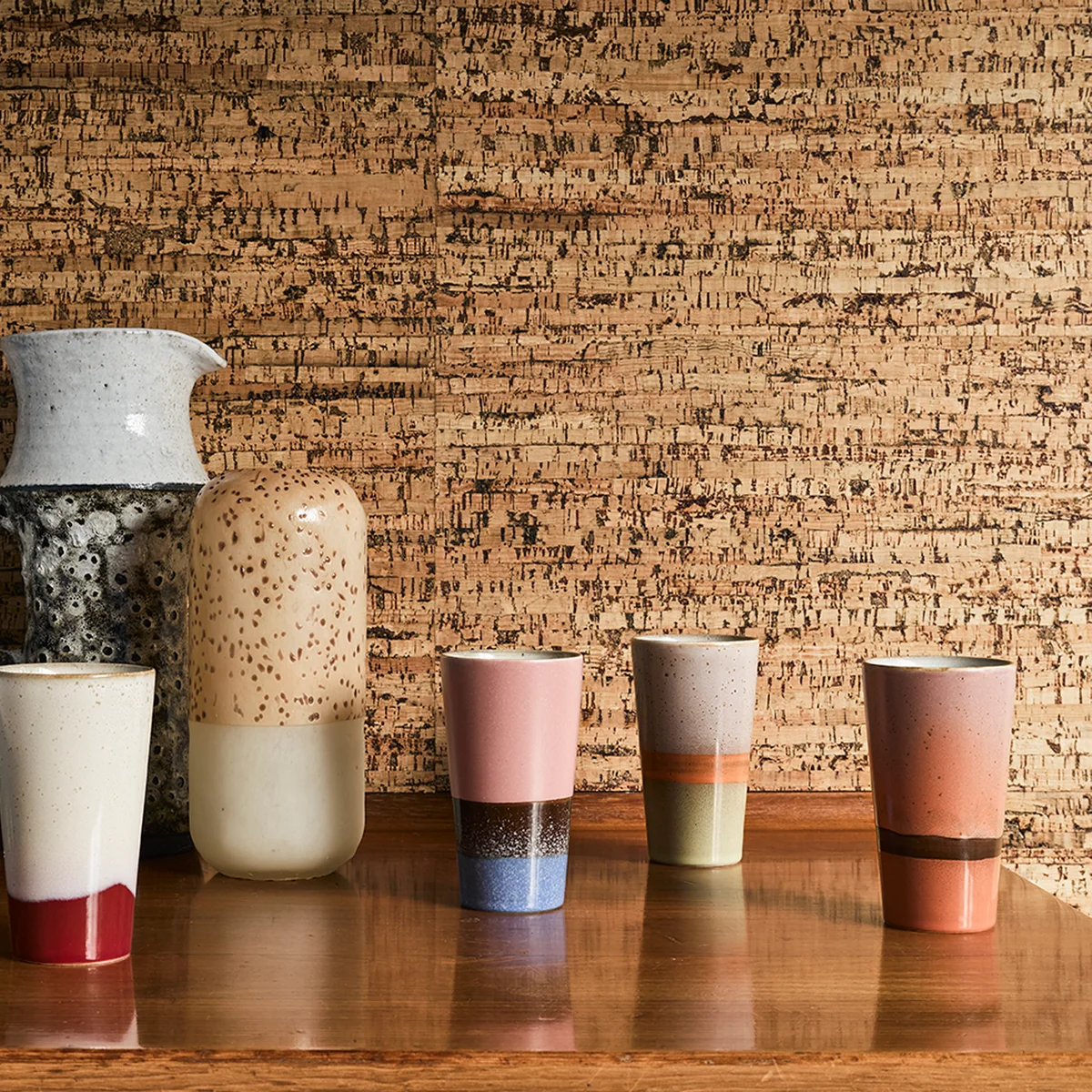 Für langjährige Sammler wie für Neuentdecker ein Grund zur Freude: Die 70's Teebecher von HKliving aus Steinzeug sind so einzigartig wie der Fingerabdruck eines Menschen, da sie von Hand gefertigt und glasiert werden. Auf diese Weise entstehen die wunderschönen Muster und Farben, die jeden Esstisch und jeden Geschirrschrank individuell aufwerten.