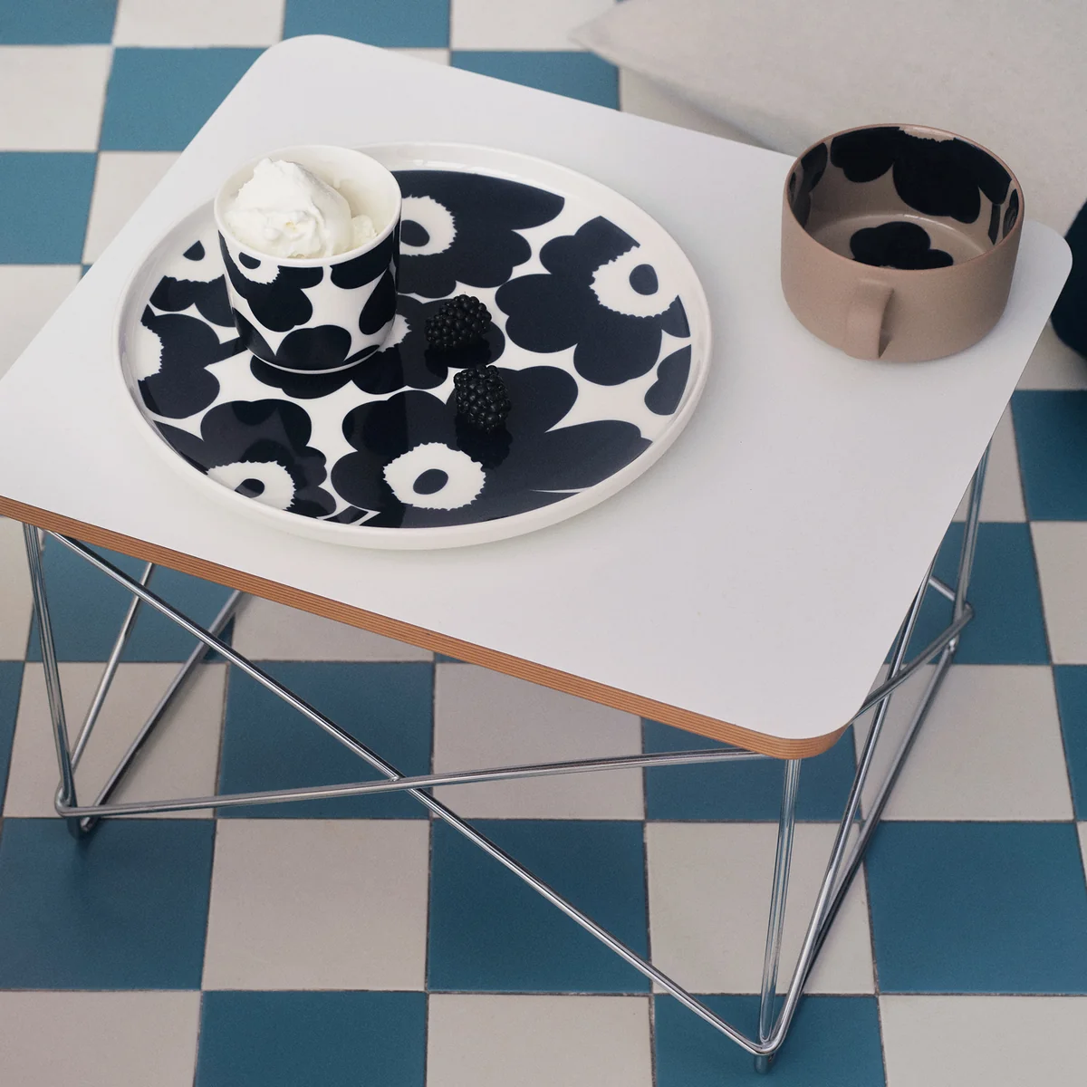 Der Oiva Unikko Becher ohne Henkel von Marimekko wird von dem berühmten Blumenmuster von Maija Isola verziert. Unikko, was auf Deutsch "Mohn" bedeutet, ist das bekannteste und am weitesten verbreitete Muster des finnischen Traditionsherstellers Marimekko.