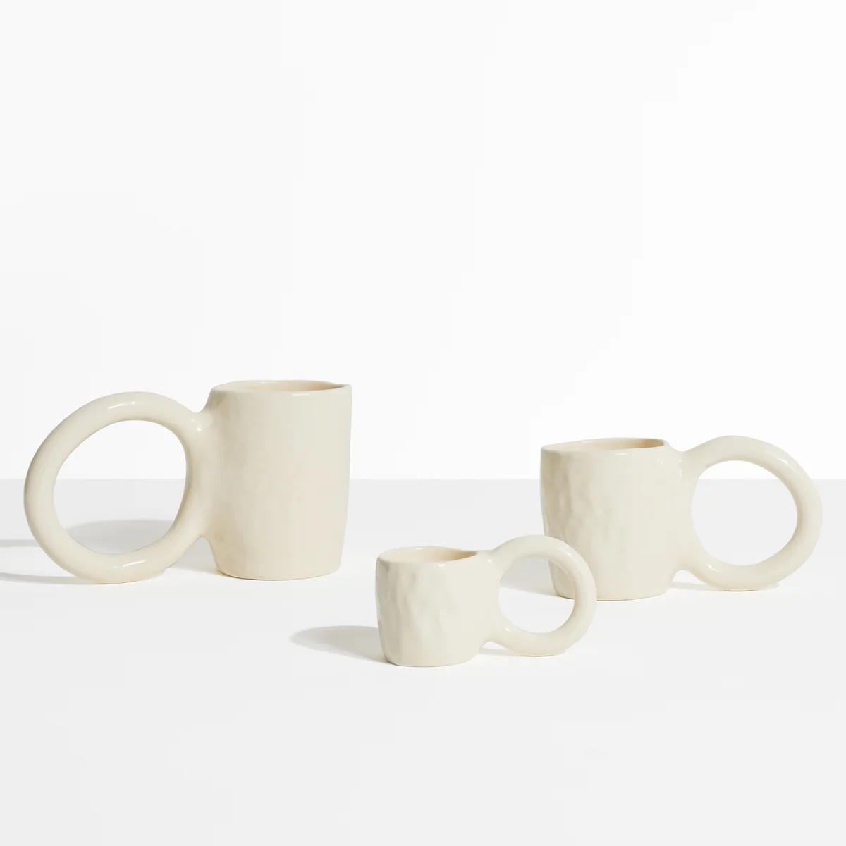 Der Donut Kaffeebecher der französischen Designerin Pia Chevalier für Petite Friture erinnert mit seinem Henkel und seiner lackierten Oberfläche an einen Donut mit glänzender Zuckerglasur. Der Becher ist charakteristisch für Chevaliers Werke, die grundsätzlich von Alltagsgegenständen inspiriert sind. Der Donut Kaffeebecher wird aus Steingut, weisser Paste und einem glasierten Überzug gefertigt.