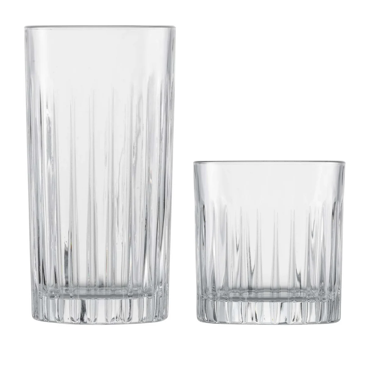 Das Gläser-Set der Stage Kollektion von Schott Zwiesel besteht aus Longdrink- und Whisky-Gläsern. Beide zeichnen sich durch ihr geradliniges Design und die geriffelte Struktur aus. Diese ist nicht nur optisch schön anzusehen, sondern sorgt auch für einen besseren Halt der Gläser. Im Whiskyglas können sich die verschiedenen Aromen frei entfalten, sodass der markante Geschmack des Whiskys voll ausgekostet werden kann. Das Longdrinkglas eignet sich nebenbei für ein frisches Glas Wasser. Wer seinen Alkohol lieber gemischt trinken möchte, kann aus dem Stage Longdrink Glas einen Cuba Libre, Wodka Lemon oder ein anderes Lieblingsgetränk geniessen. Beide zusammen sind die perfekte Kombination für einen stilvollen Abend.