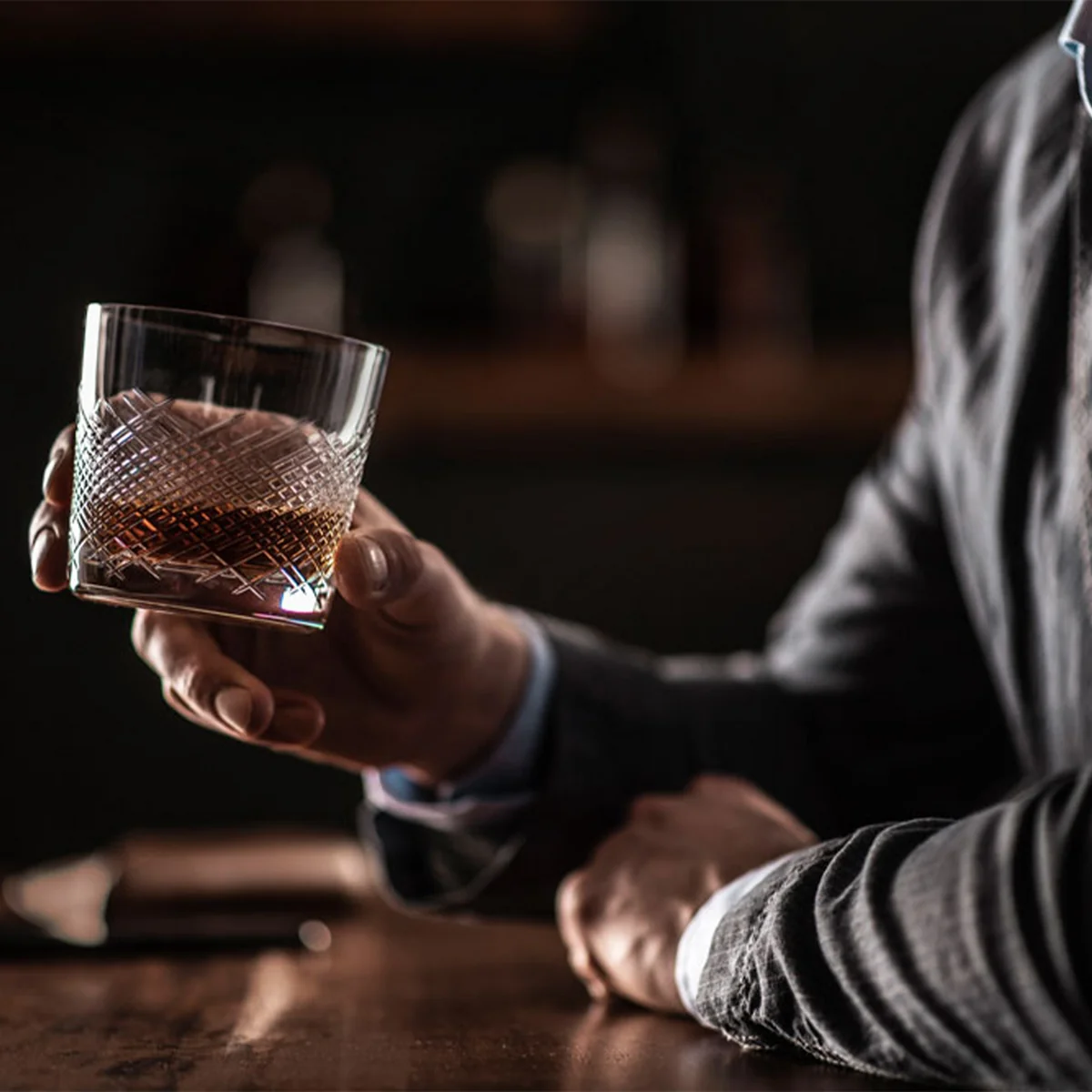 Die Bar Premium No. 2 Whiskygläser wurden von Charles Schumann für Zwiesel Glas entworfen. Mit seiner langjährigen Erfahrung prägte er die Barkultur weltweit. Das klassische Whiskyglas wurde von ihm neu interpretiert und mit einer besonderen Schliffstruktur versehen, die ein unverwechselbares Spiel mit Licht und Farbe erzeugt. Ein dunkler Whisky hebt die Struktur hervor und betont das raffinierte Design.