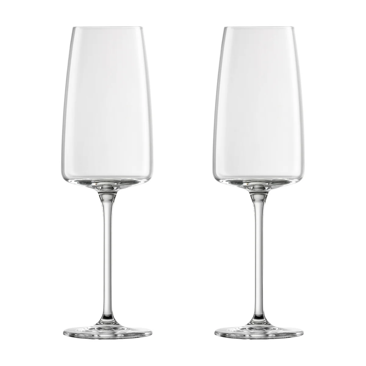 Das Vivid Senses Sekt- und Schaumweinglas des Herstellers Zwiesel Glas eignen sich - wie der Name vermuten lässt - ideal für die Entfaltung von Kohlensäurehaltigen Spirituosen. Der Moussierpunkt am Boden des Glases ermöglicht, dass die Blasen des Getränks optimal prickeln und sich die Aromen der Weine wunderbar entfalten.