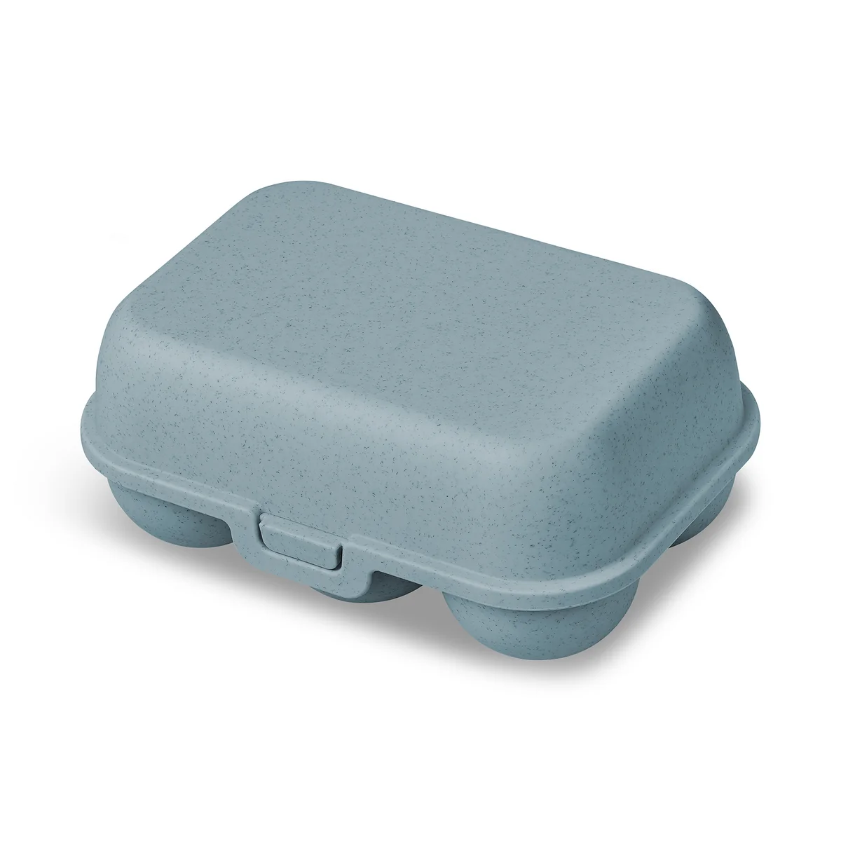 Eggs to go von Koziol ist ein praktischer Mehrweg Eierbehälter und der ideale Begleiter für den Einkauf auf dem Markt oder im nächsten Hofladen. In der Box lassen sich wie in einer gewöhnlichen Eierpappe bis zu 10 Eier sicher nachhause transportieren. Und das ohne zusätzliche Einwegverpackung. Ein praktischer Clipverschluss dient zum einfachen Öffnen und Schliessen der Eierbox und verhindert das ungewollte Aufgehen des Behälters während des Transports.