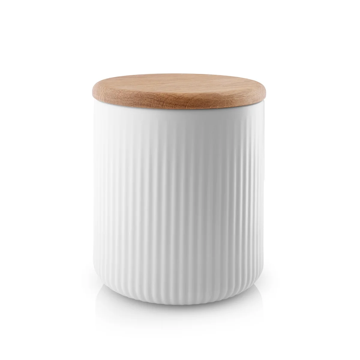 Die Dosen werden aus Porzellan mit dem typisch Rillenmuster der Legio Nova Serie hergestellt. Der Decke besteht aus Eichenholz und Silikon. Aufgrund des dicht schliessenden Deckels bleiben Geschmack und Aroma des Inhalts erhalten, wenn sich Lebensmittel in den Aufbewahrungsdosen befinden. Die Dosen sind spülmaschinenfest, der Holzdeckel lässt sich leicht mit einem feuchten Tuch reinigen.