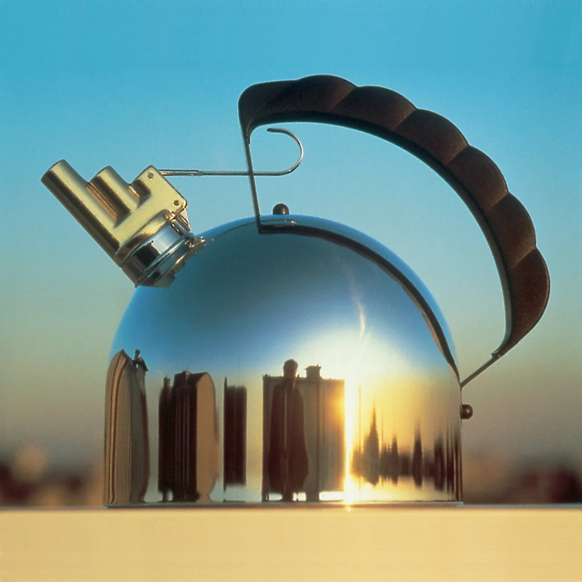 Richard Sapper wollte bei seinem Kesselentwurf für Alessi auf den aufdringlichen Pfeifton konventioneller Wasserkessel verzichten. Diese musikalische Herausforderung ergab im Endresultat den 9091 Wasserkessel, der bei Alessi als erstes multi-sensorisches Design interpretiert wird.