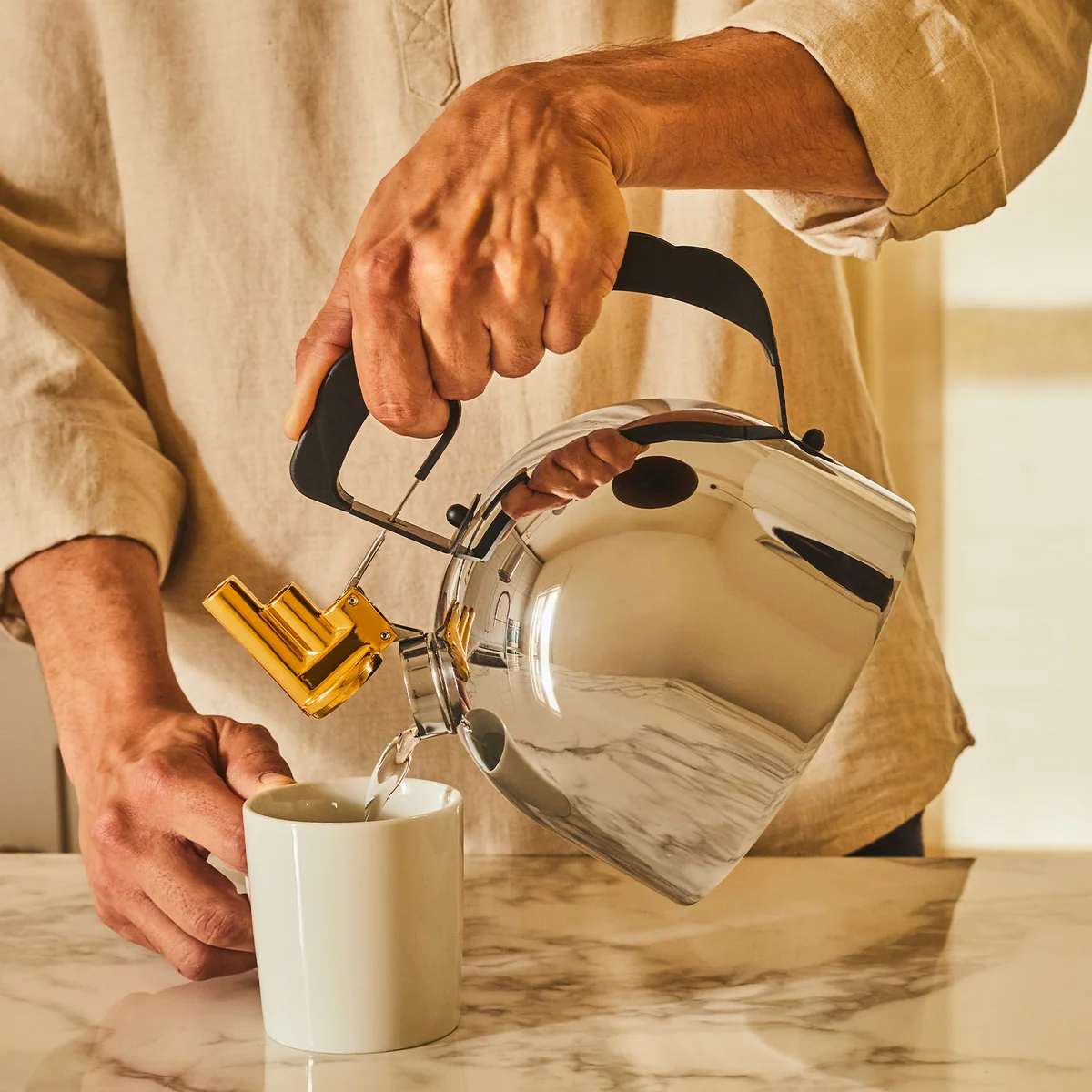 Der 9091 Kessel von Richard Sapper war der erster Design-Kessel von Alessi und kündigte 1983 eine neue Ära von Wasserkesseln an - für Alessi selbst sowie für viele andere Kesselhersteller. Er ist für Elektro-, Gas- und Induktionsherde geeignet.