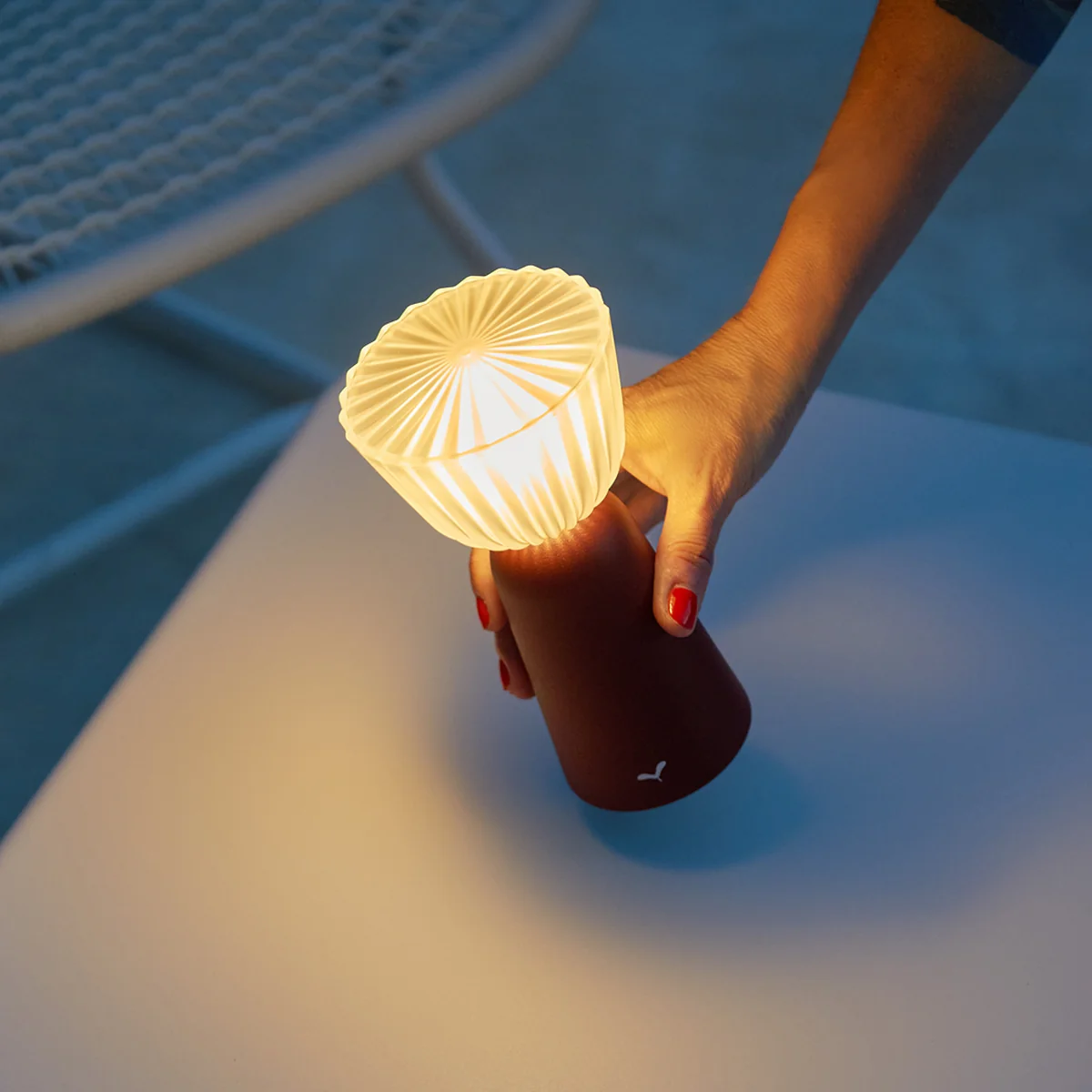 Die Swing LED Akkuleuchte von Fermob verbindet modernes Design mit flexibler Funktionalität und ist ideal für den Innen- und Aussenbereich. Mit ihrem schlichten, eleganten Look und der kabellosen LED-Technologie bietet sie eine stimmungsvolle Beleuchtung, wo immer sie gebraucht wird. Die Helligkeit lässt sich je nach Bedarf dimmen, und die robuste Konstruktion sorgt dafür, dass die Swing Leuchte wetterfest und langlebig ist. Perfekt für den Garten, die Terrasse oder das Wohnzimmer – die Swing LED Akkuleuchte schafft eine gemütliche Atmosphäre überall im Handumdrehen.