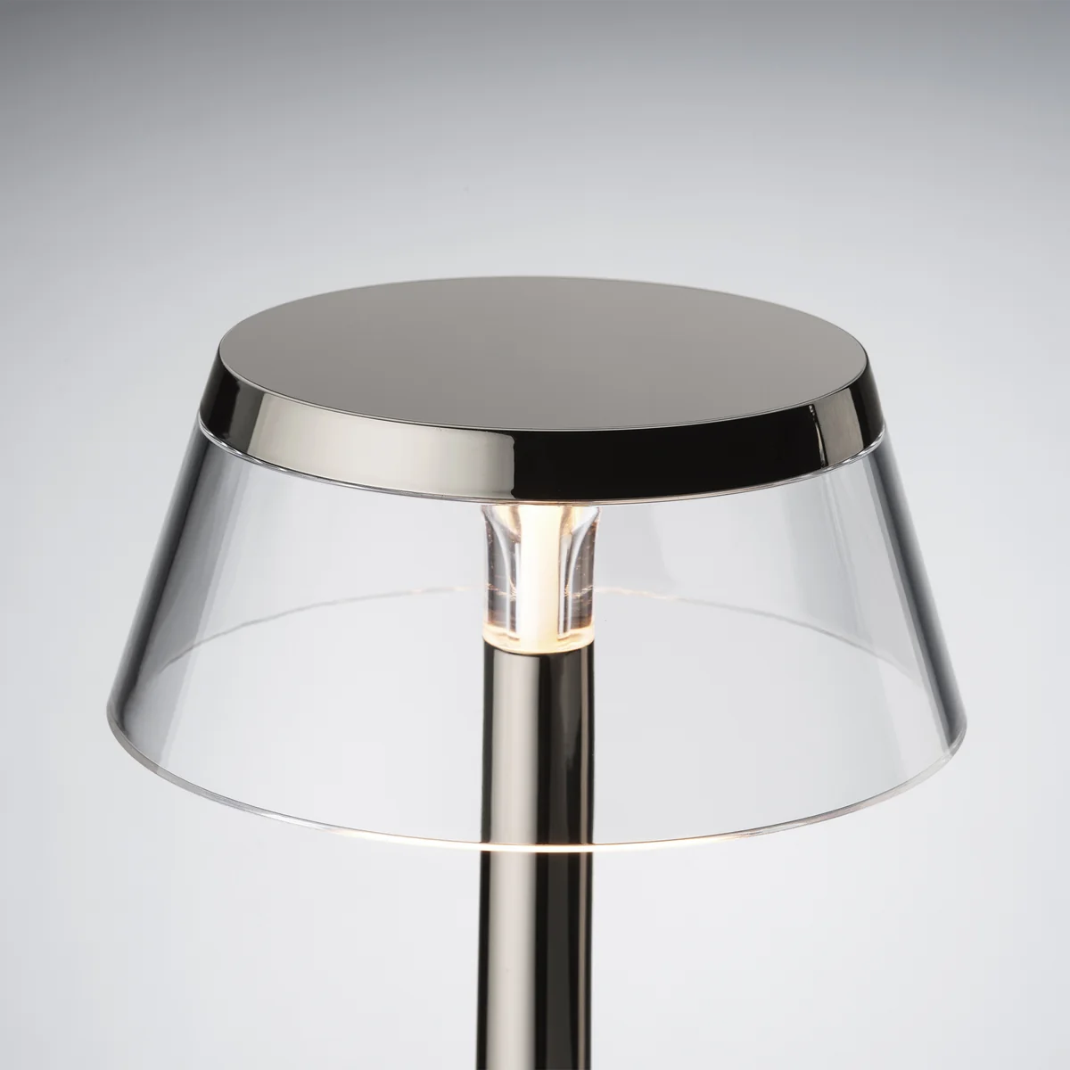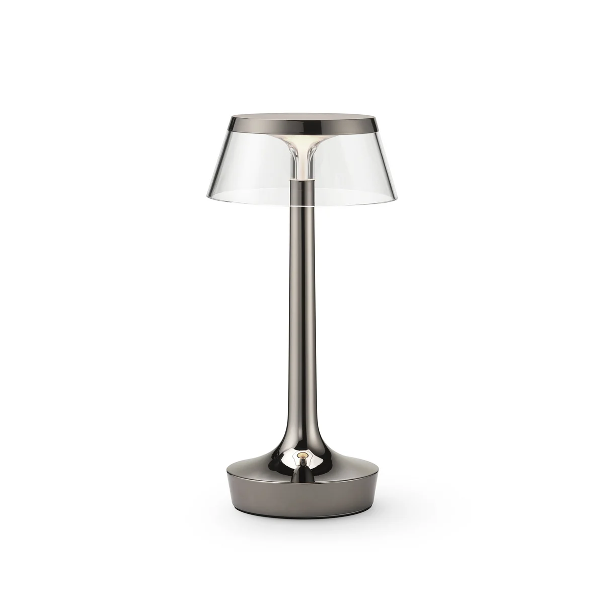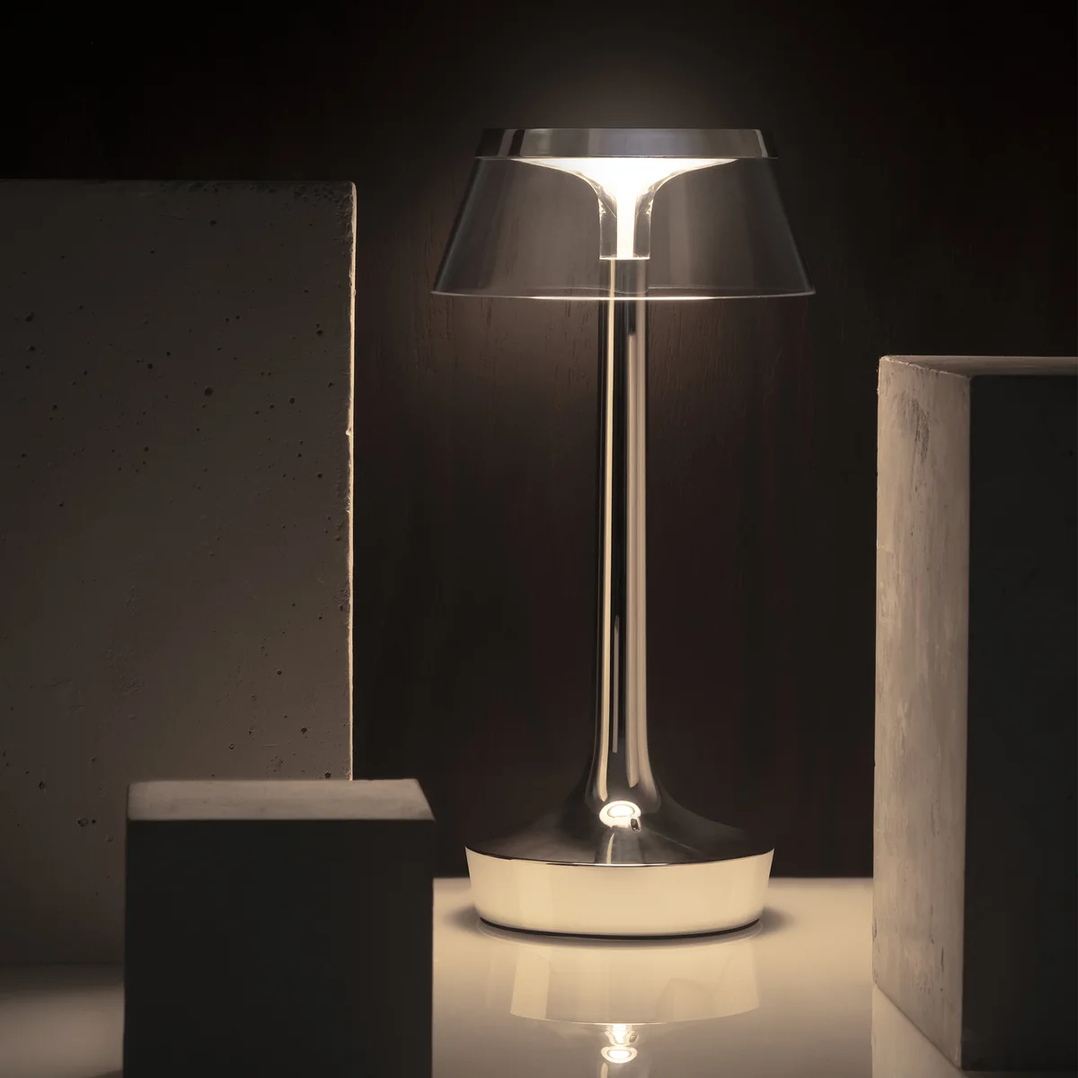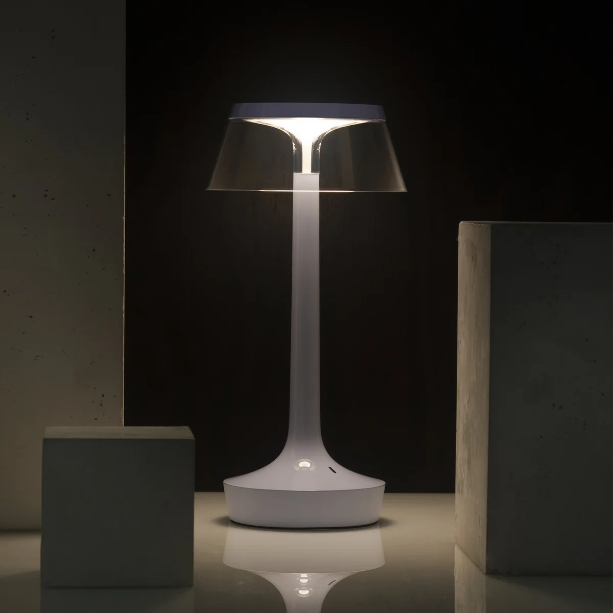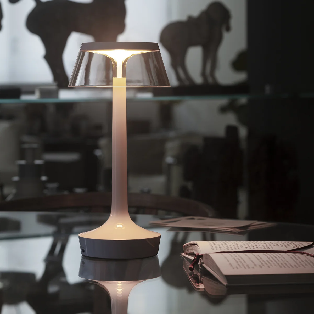 Die Bon Jour Unplugged LED Akku-Tischleuchte Color Tune von Flos vereint ikonisches Design mit modernster Lichttechnologie – kabellos, mobil und individuell einstellbar. Entworfen von Philippe Starck, überzeugt die Leuchte durch ihre schlanke Silhouette und klare Linienführung. Das transparente Untergestell und der austauschbare Schirm schaffen einen eleganten, schwebenden Effekt, der in jedem Ambiente stilvolle Akzente setzt.