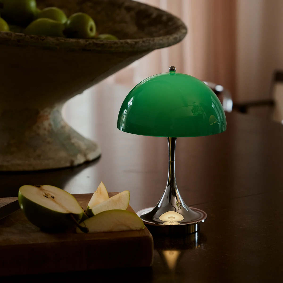 Die Panthella Leuchte wurde 1971 von dem dänischen Designer Verner Panton entworfen und ist seither ein ikonisches Beispiel für modernes, skandinavisches Design. Panton war bekannt für seine kreative Herangehensweise an organische Formen und für seinen visionären Einsatz von Farbe und Licht. Die Panthella verkörpert seine Vorstellung, dass sowohl der Schirm als auch der Fuss als Reflektoren dienen sollten, um das Licht gleichmässig im Raum zu verteilen. Die charakteristische, pilzartige Form der Leuchte und die weichen Linien machen sie zu einem zeitlosen Designklassiker, der bis heute nichts von seiner Relevanz verloren hat. Mit der neuen Version V3 verbindet Louis Poulsen die Designgeschichte und die Funktionalität dieser ikonischen Leuchte mit den Anforderungen der modernen, mobilen Beleuchtung.