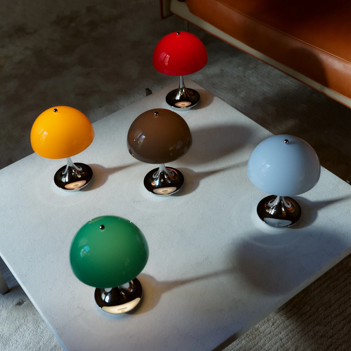 Die Panthella 160 Portable V3 ist eine ästhetische und technische Weiterentwicklung, die durch verbesserte Bedienbarkeit, längere Akkulaufzeit und grössere Farbauswahl überzeugt.