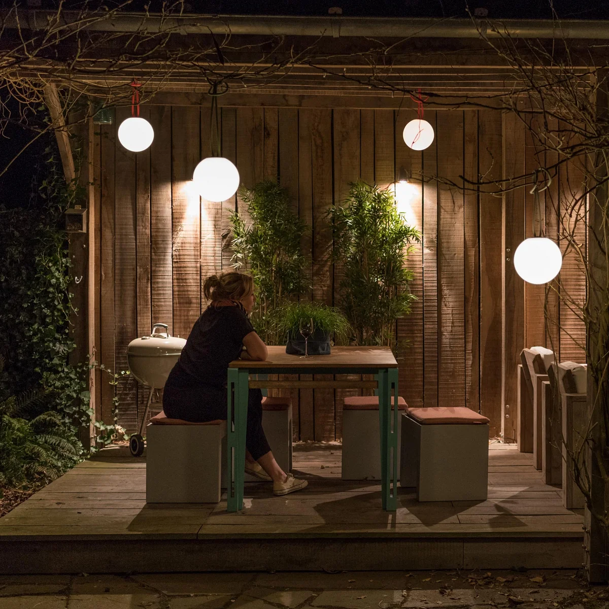 Wenn Bolleke eingeschaltet ist, erinnert sie an eine Perle, die dank der durchdachten Form gleichmässiges und warmes Licht verteilt. Mit der Silikonaufhängung kann die Hängeleuchte an jeder beliebigen Stelle im Haus oder im Garten aufgehängt werden. Ein Ast ist da genau so gut wie die Rückenlehne eines Stuhls oder die Bettkante.