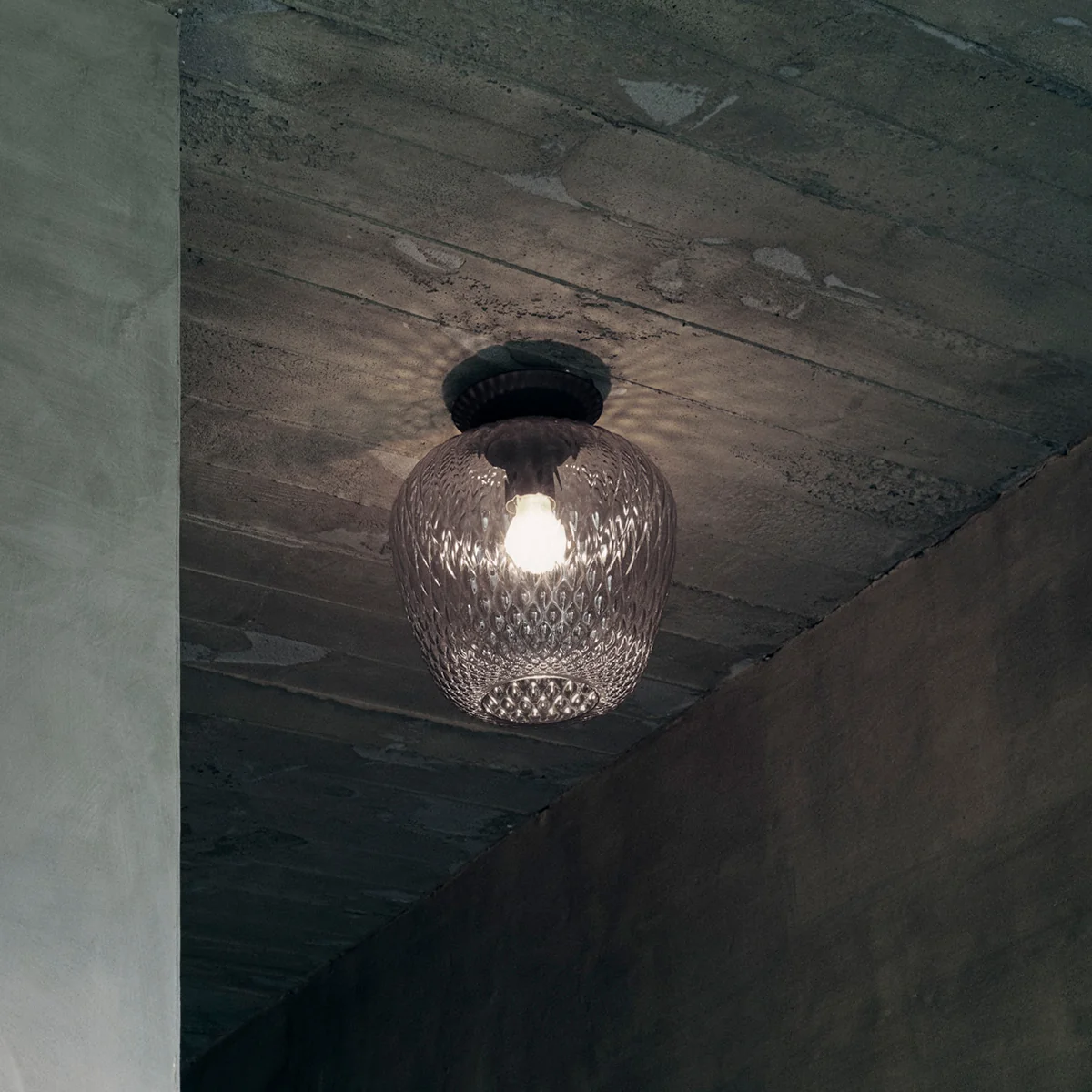 Die Blown SW5 Deckenleuchte ist ein Entwurf des britischen Designers Samuel Wilkinson für &Tradition. Die Leuchte zeichnet sich durch ihre besondere Oberflächenstruktur aus. Beim Experimentieren mit Reflexionen und Lichtbrechungen fokussierte sich der Designer besonders auf den ein gestepptes Muster, das, umgeben von einer Lichtquelle, ein extravagantes Spiel mit Licht und Schatten erzeugt hat. Entstanden ist die Blown SW5.