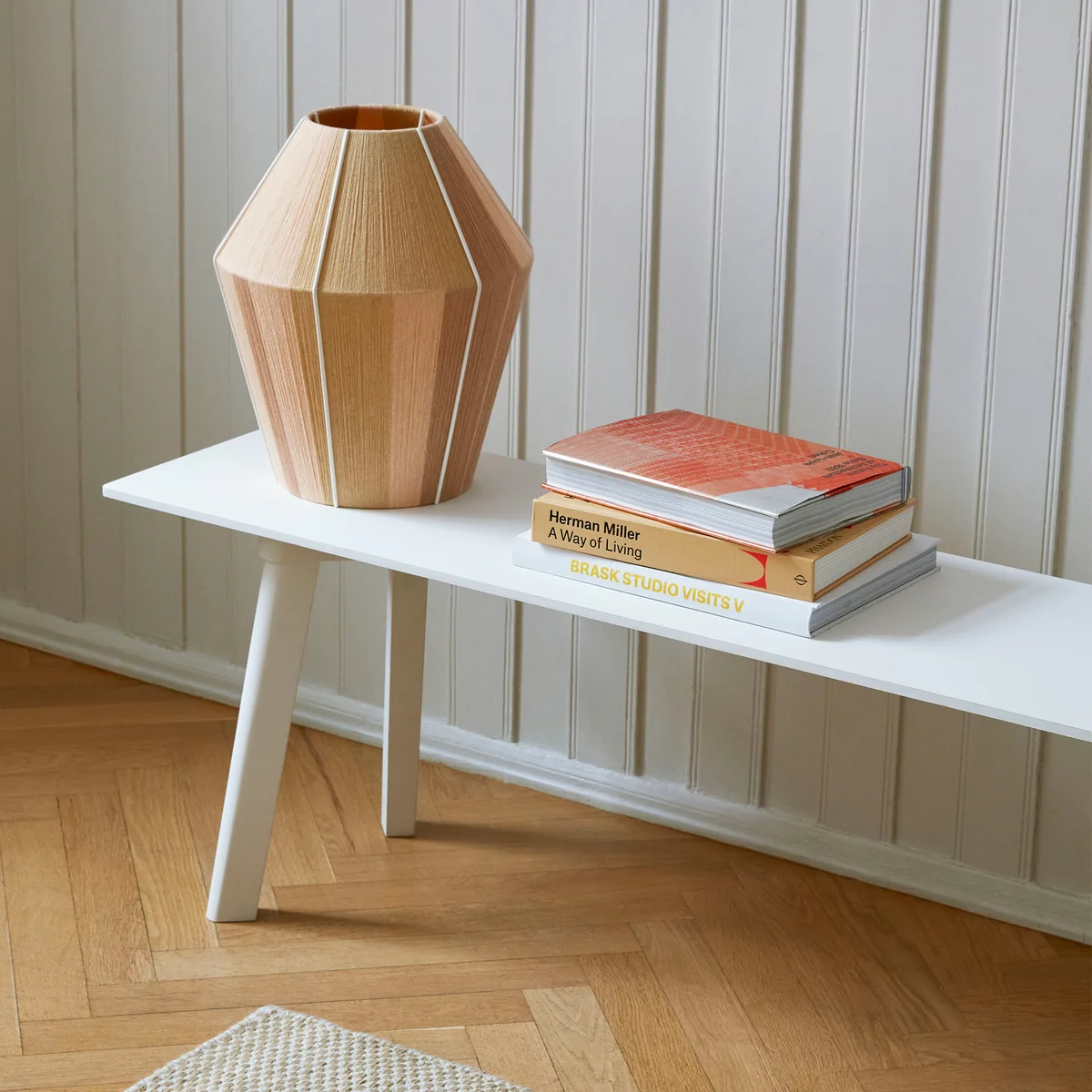 Der Bonbon Lampenschirm von HAY ist ein Entwurf der Designerin Ana Kraš und zeichnet sich durch seine besondere Webtechnik aus. Als Basis des Schirms dient ein pulverbeschichteter Stahlrahmen, der mit qualitativ hochwertigem, UV-beständigem Garn umwickelt wurde. Die Verwendung verschiedener Farben sorgt für Abwechslung und und lässt den Schirm auch ohne Licht als dekoratives Objekt wirken.
