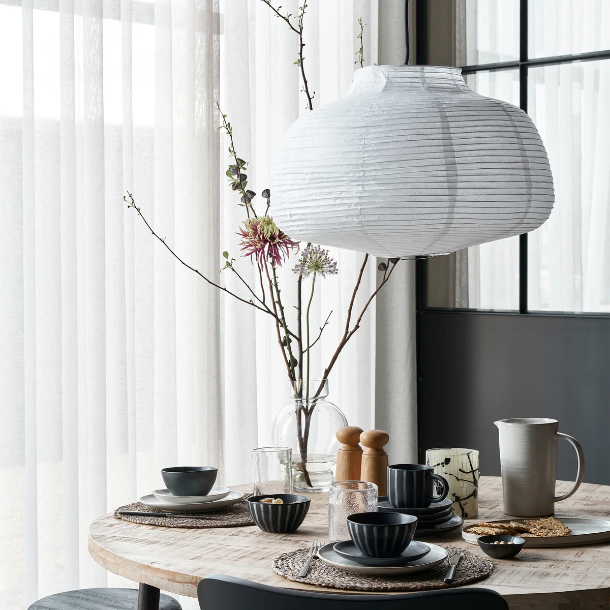Der Rica Lampenschirm von House Doctor ist eine zeitgemässe Neugestaltung des traditionellen Reispapier-Lampenschirms. Man ist vielleicht schon mit dem klassischen Material und dem luftigen Charakter vertraut, den es erzeugt. Es ist definitiv immer noch sehr beliebt. Die Form und die beeindruckende Grösse machen Rica zu einer idealen Wahl, um eine angenehme Atmosphäre im Essbereich oder über dem Couchtisch zu schaffen.