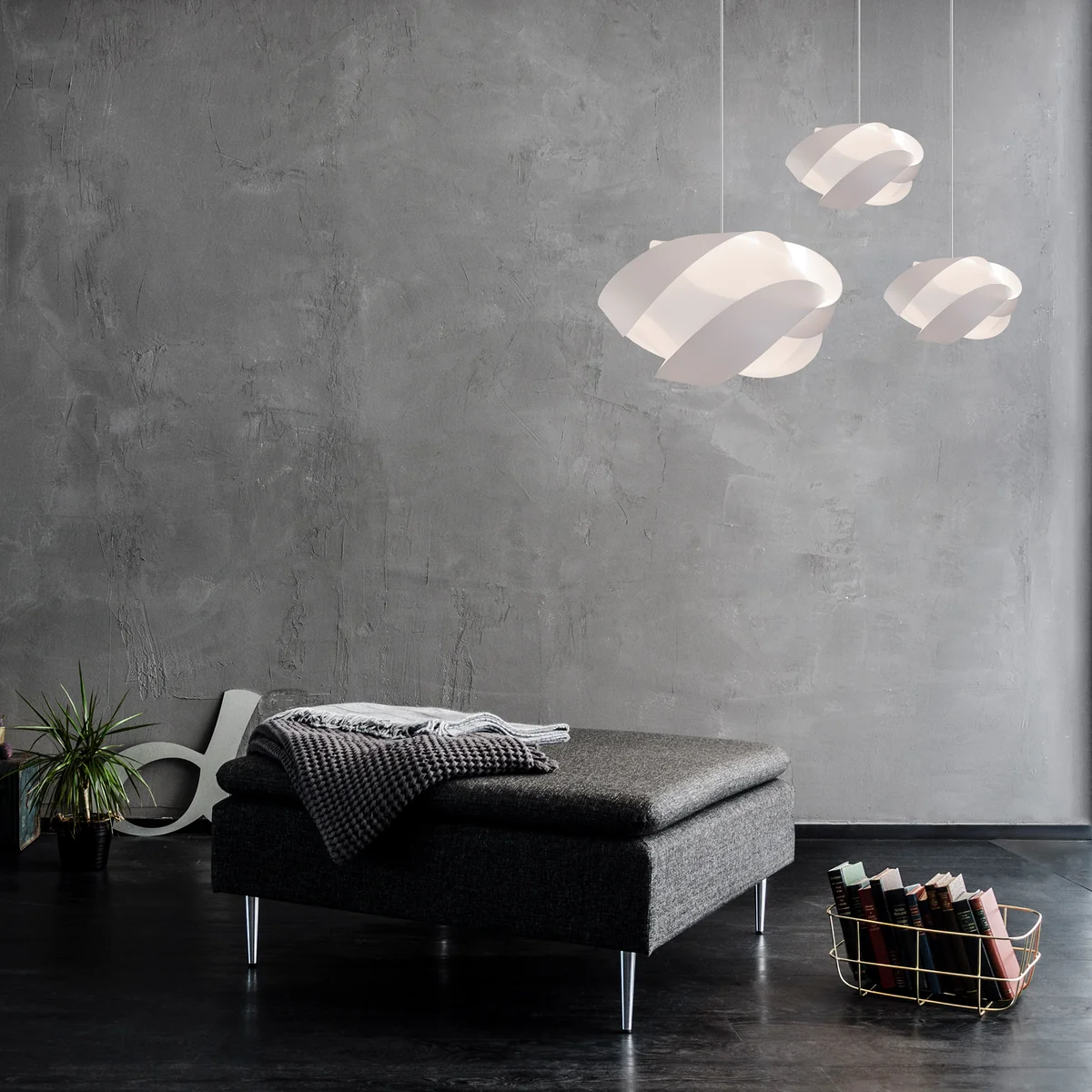 Die Ribbon Leuchte von Umage erinnert mehr an eine künstlerische Skulptur als an eine klassische Leuchte. Der Designer Lorenzo Radaelli liess sich bei seinem Entwurf von der Möbiusschleife inspirieren, einem zweidimensionalen, nahtlos mit sich selbst vernähtem Band. Mit ihrer dynamisch anmutenden Form sorgt die Ribbon Pendelleuchte für ein elegantes Licht- und Schattenspiel an der Wand, das für einen besonderen Hingucker und eine gemütliche Atmosphäre im Raum sorgt.