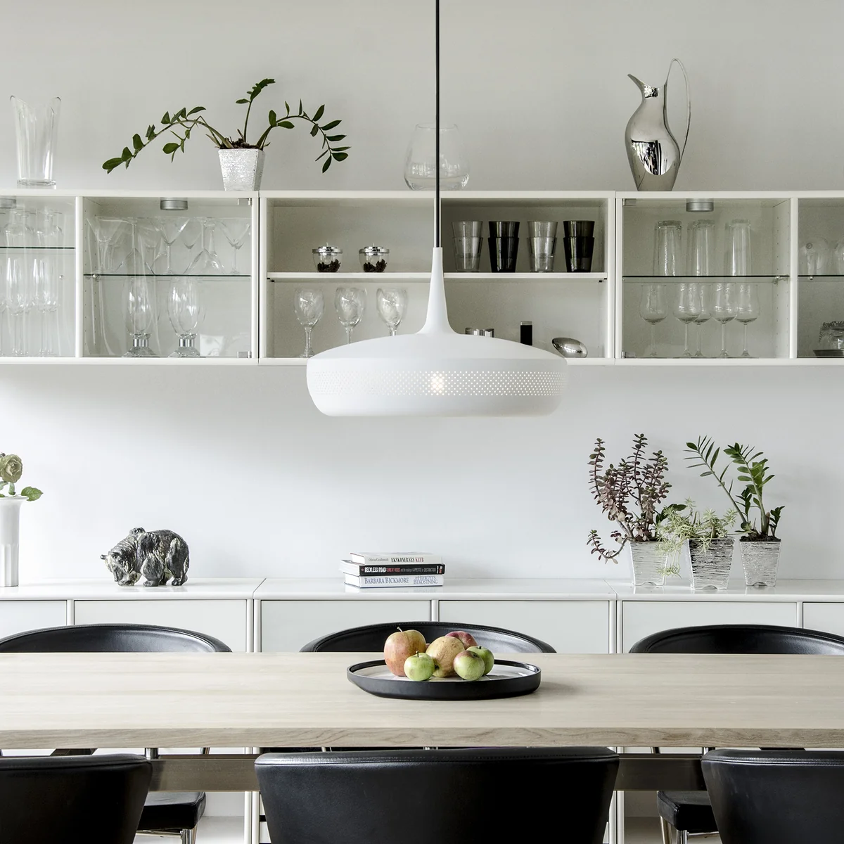 Die Clava Dine von Umage ist eine Variante des ausgefallenen Klassikers Clava im Retro Charme und speziell für Esstische und grosse Wohnräume konzipiert. Die Clava Dine knüpft an den Erfolg der Clava Pendelleuchte an und ist in Ihrer Form die grosse Schwester der schmalen, modernen Lampe.