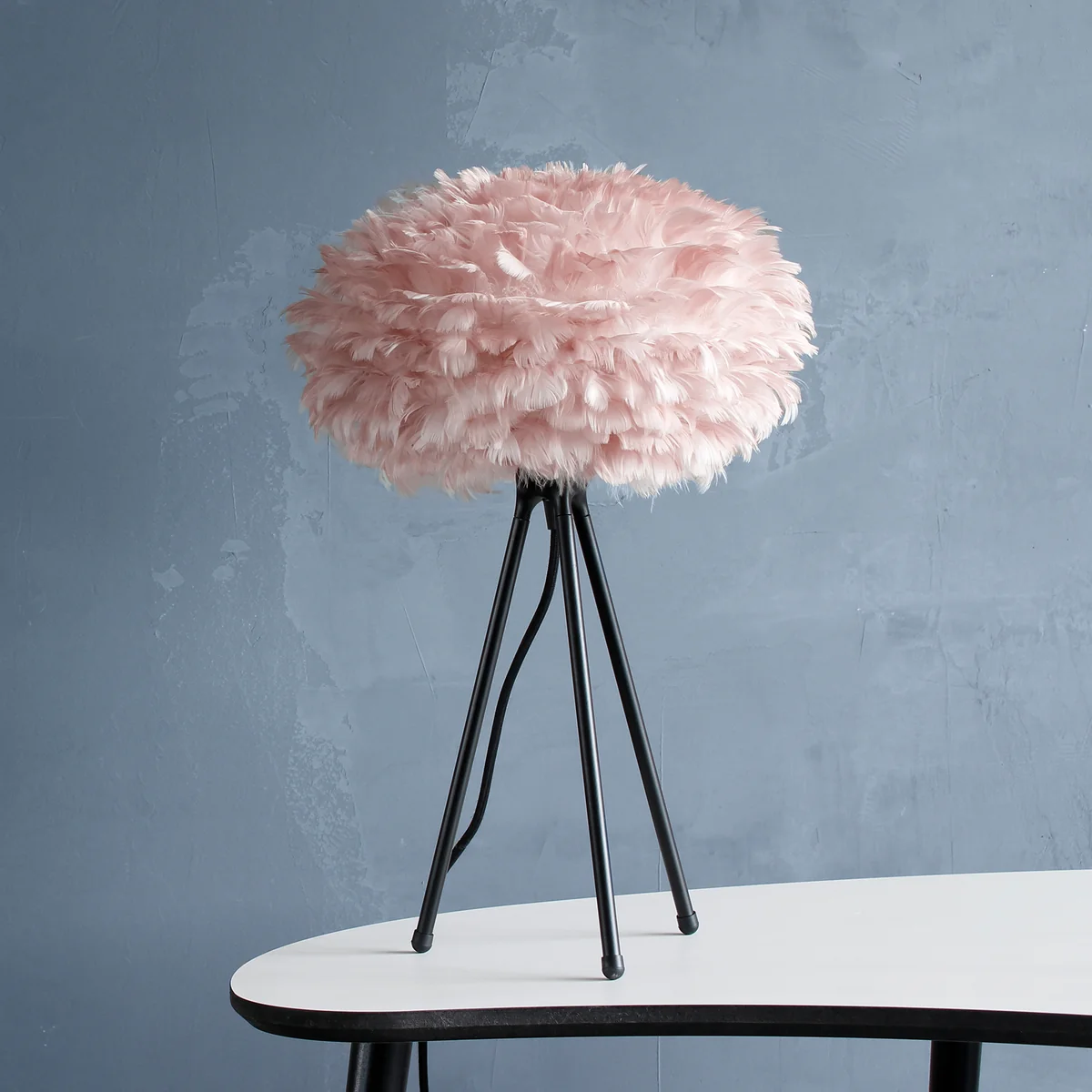Der Eos Leuchtenschirm von Umage ist nun auch in einem zarten Rosa erhältlich. Der Schirm besteht aus einem filigranen Rahmen aus Stahl, der mit einer dünnen Schicht Papier ummantelt wird. Echte Gänsefedern werden auf das Papier aufgebracht und sorgen für den extravaganten Look der Leuchte.